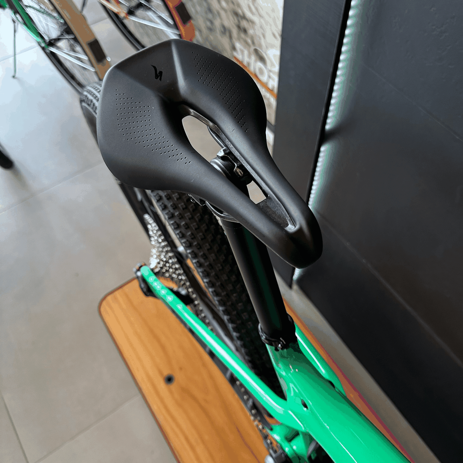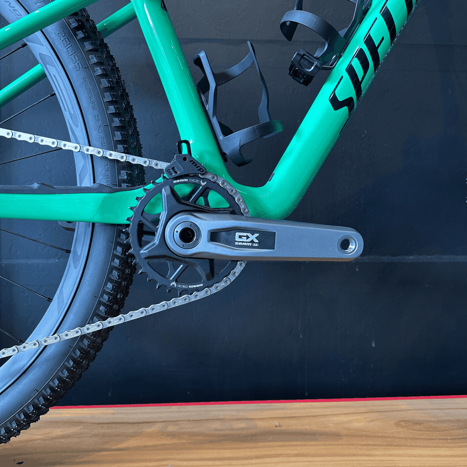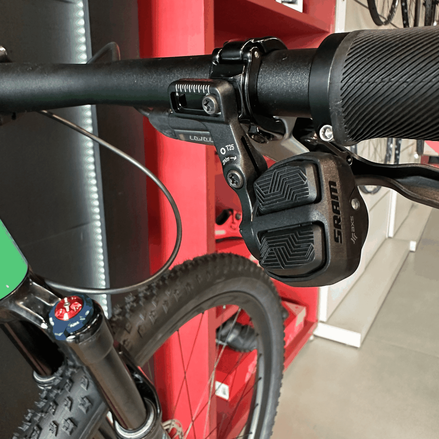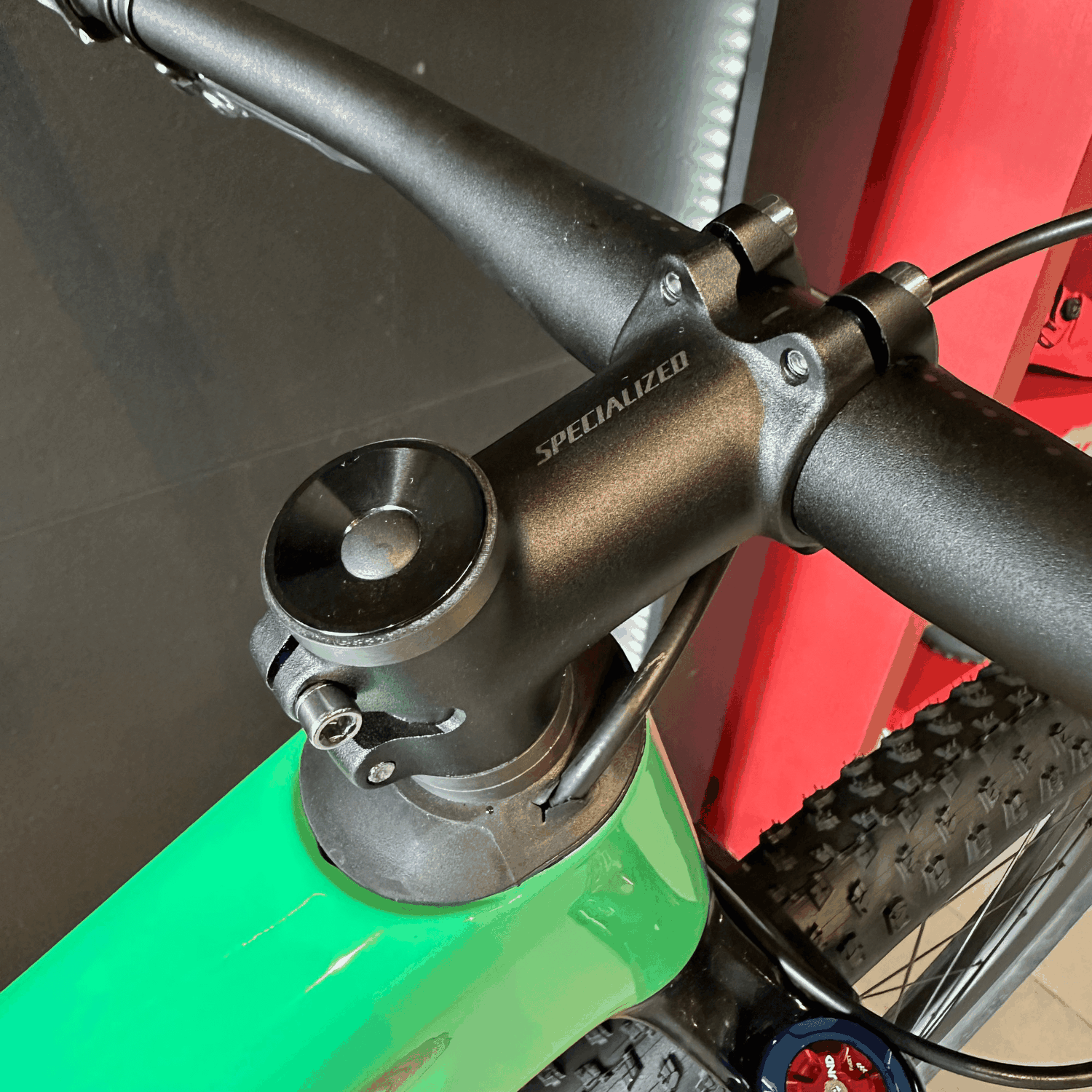 As rodas Roval Control Carbon e os pneus Specialized Fast Trak e Renegade proporcionam leveza, resistência e aderência incomparáveis, enquanto o cockpit em alumínio otimiza o desempenho sem comprometer o conforto.