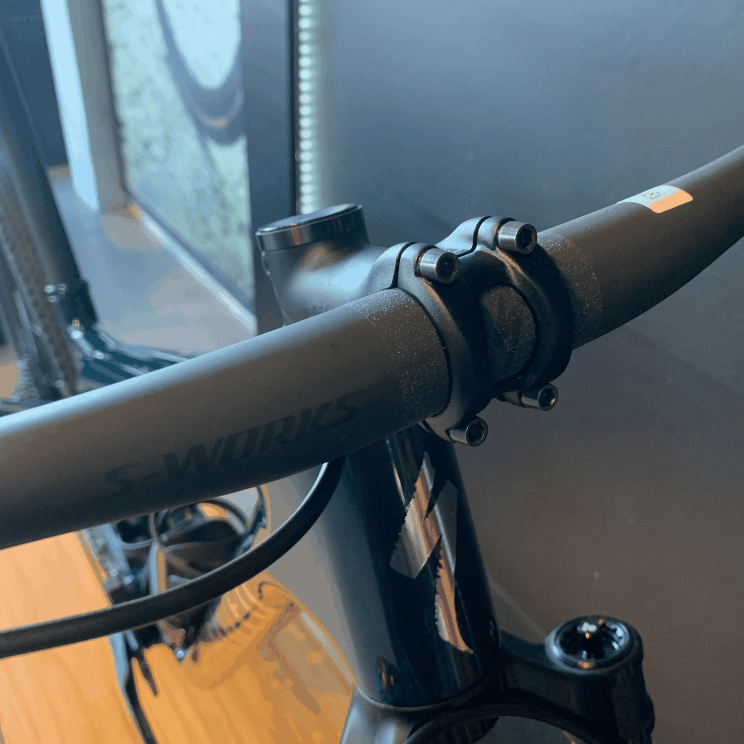 - Guidão: S-Works Carbon XC Mini Rise, curva ascendente de 6 graus, curva traseira de 8 graus, elevação de 10 mm, 760 mm, 31,8 mm;