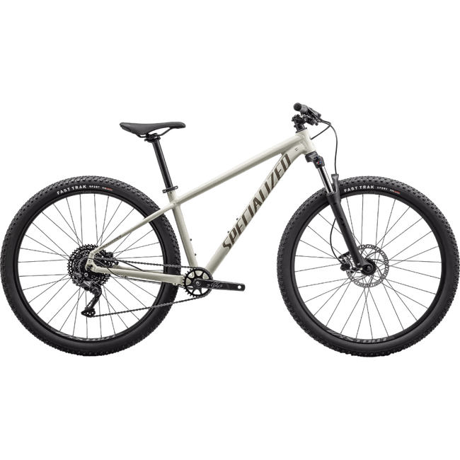 A Bicicleta Specialized Rockhopper Comp Aro 29 Deore 10v 2023 é a escolha perfeita para ciclistas que buscam alto desempenho, durabilidade e estilo. Com um design elegante nas cores branco e dourado, esta bicicleta é ideal para trilhas desafiadoras e terrenos variados. O quadro Specialized A1 Premium Butted Alloy oferece leveza e resistência, com roteamento interno dos cabos, espaçamento de 135x9mm e compatibilidade com canote retrátil. A suspensão dianteira SR Suntour XCM 29 garante uma pedalada suave e controlada.