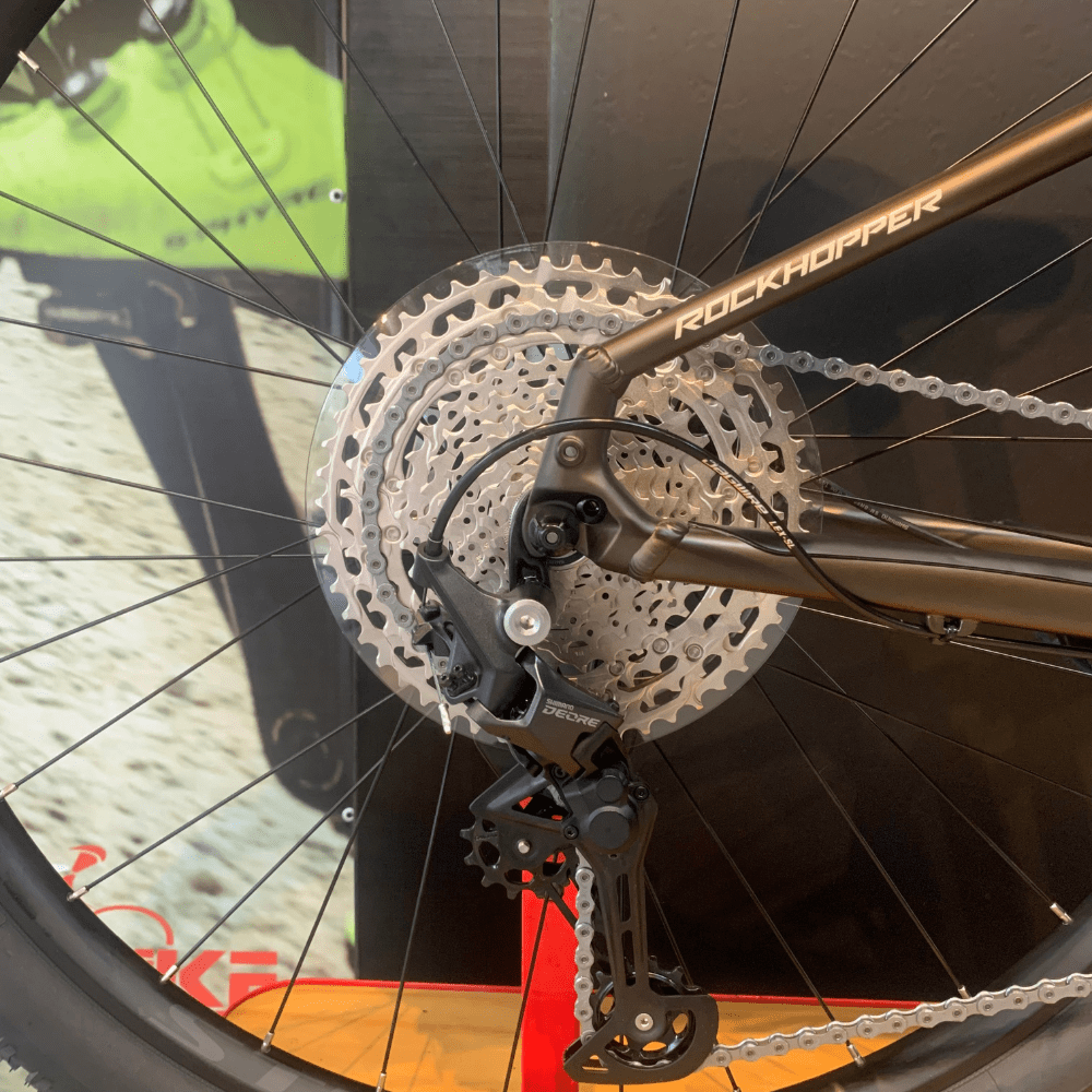 Equipada com o renomado grupo Deore de 11 velocidades da Shimano, a Rockhopper Elite oferece uma ampla gama de marchas para lidar com subidas íngremes e descidas rápidas. A precisão e a suavidade nas trocas de marcha garantem um desempenho consistente em todas as situações. Os freios a disco hidráulicos proporcionam uma frenagem confiável, mesmo em condições adversas, garantindo total controle da bicicleta.