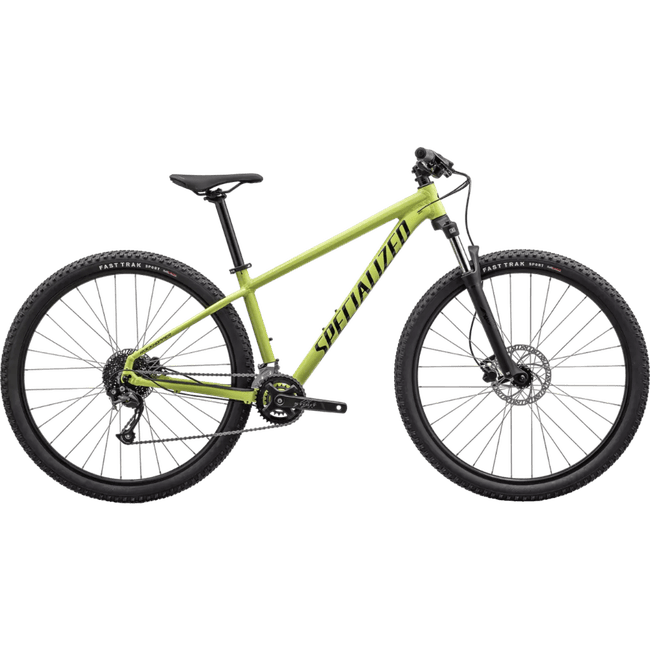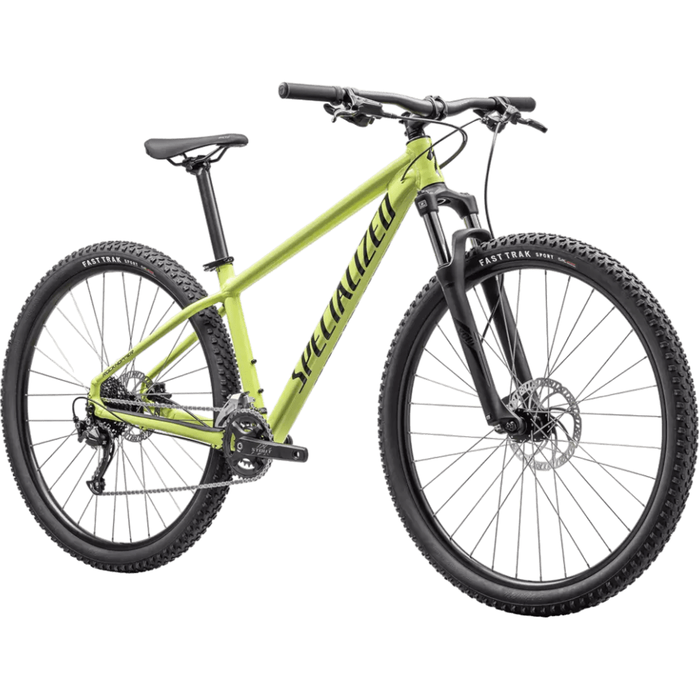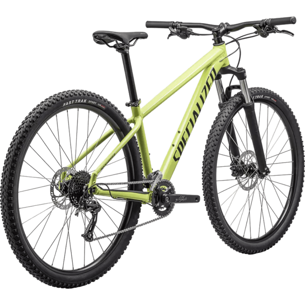 As rodas são compostas por cubos Formula 6-Bolt com espaçamento de 100x9mm na dianteira e Formula SP-2125 com freehub e espaçamento de 135x9mm na traseira. Equipadas com aros Specialized Alloy Disc Only Double-Wall com largura interna de 25mm, e pneus Fast Trak Sport de 29x2.35" na dianteira e traseira, essas rodas garantem tração excepcional e estabilidade em trilhas técnicas.