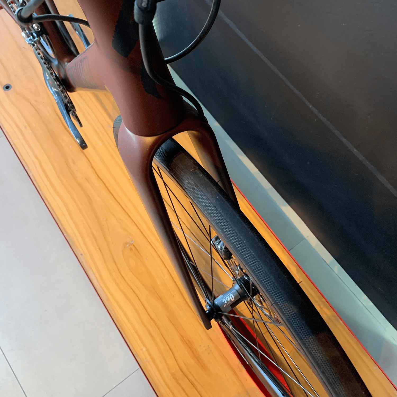 O quadro Specialized Roubaix tamanho T-58, combinado ao garfo da própria marca, entrega rigidez e absorção de impactos, perfeito para lidar com as irregularidades do asfalto sem perder eficiência na pedalada. A geometria foi pensada para reduzir a fadiga em longos percursos, mantendo o ciclista em uma posição confortável, sem comprometer o desempenho.