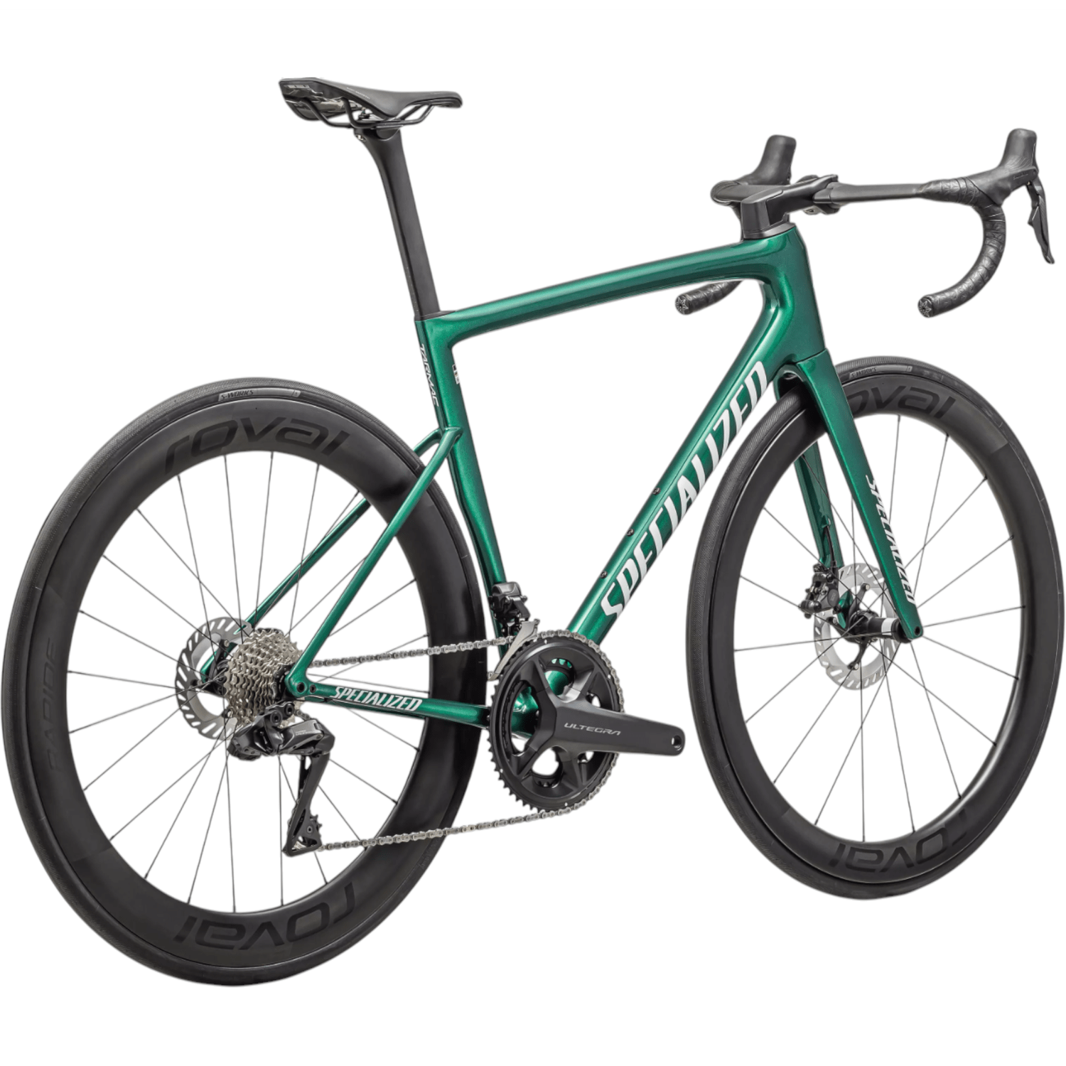 Equipada com o grupo eletrônico Shimano Ultegra Di2 12 velocidades, a Tarmac SL8 oferece trocas rápidas, silenciosas e extremamente confiáveis, mesmo sob alta carga. O pedivela Ultegra R8100 com medidor de potência 4iiii permite controle total do rendimento, ideal para ciclistas que treinam por dados e buscam evolução constante. O conjunto de rodas Roval Rapide CL II em carbono, referência em aerodinâmica e estabilidade, garante acelerações explosivas e excelente manutenção de velocidade em terrenos planos e ondulados.