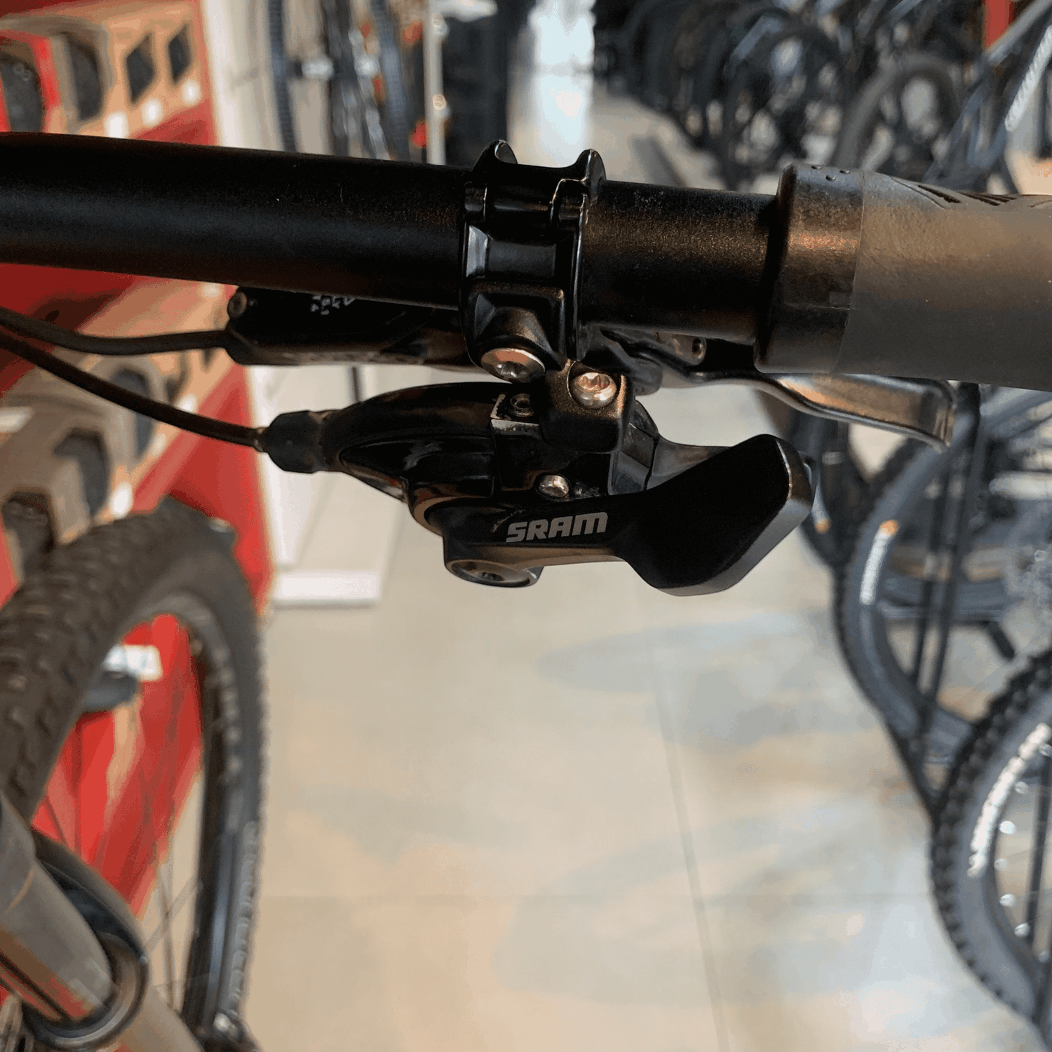 O quadro T-17 full suspension com amortecedores RockShox dianteiro e traseiro garante conforto e tração em terrenos variados. Já o grupo SRAM GX de 11 velocidades com cassete 11x42 dentes oferece trocas precisas e um desempenho ágil nas trilhas mais técnicas.