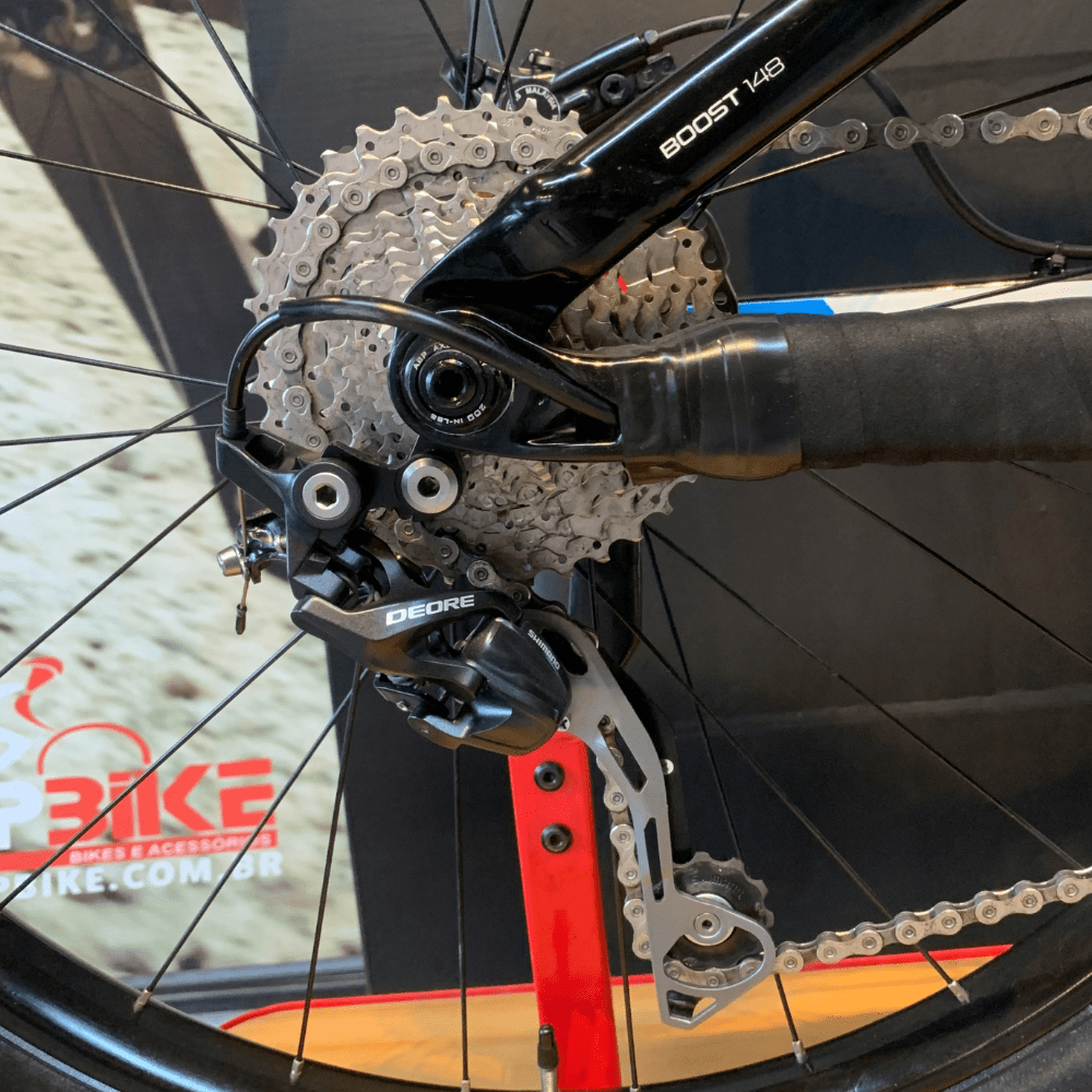 Componentes Deore de Alta Qualidade: Os componentes Deore da Shimano, presentes em áreas críticas como câmbios e freios, proporcionam uma performance confiável. Precisão nas trocas de marcha e potência de frenagem consistente são características fundamentais desses componentes.