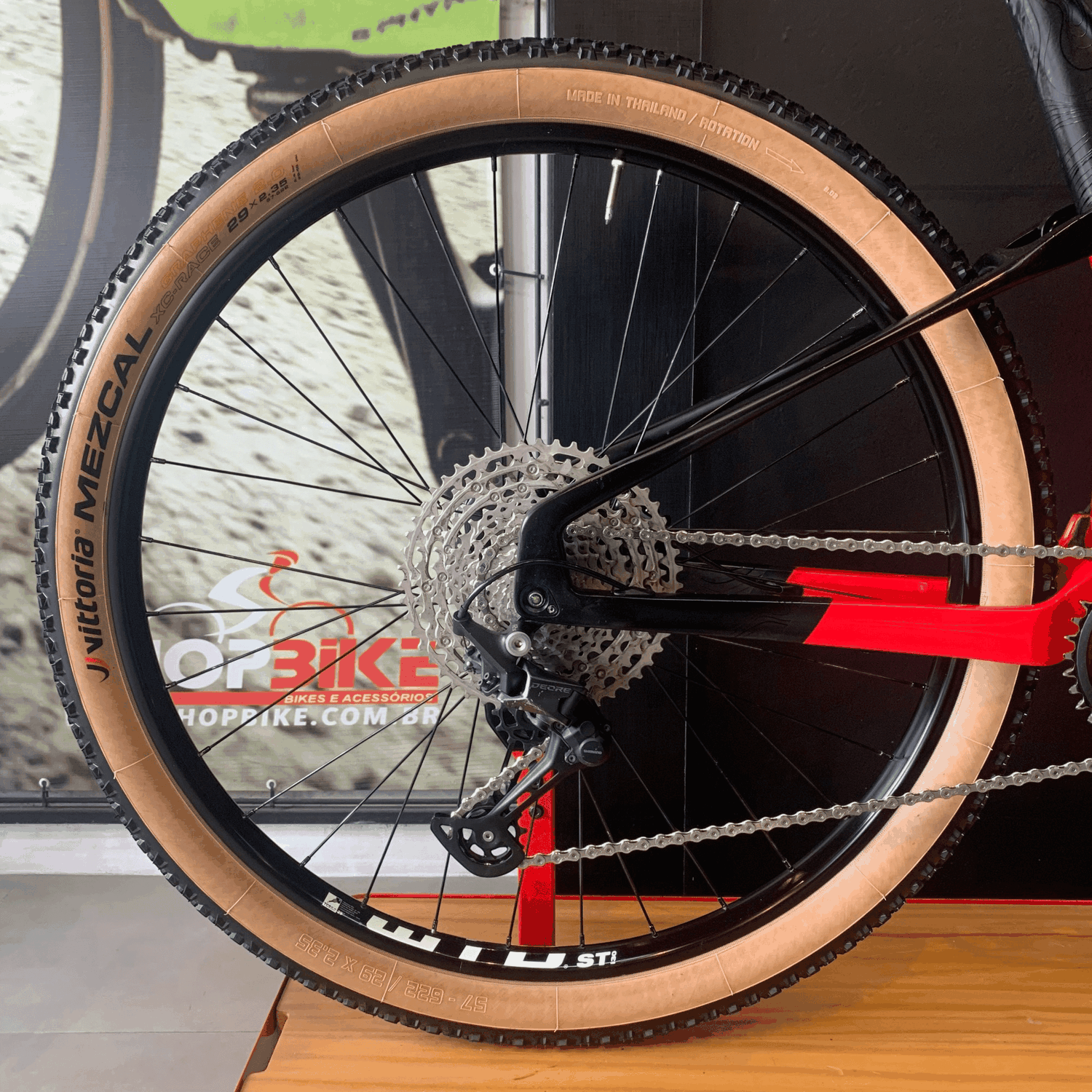 As rodas com aros WTB ST I30 e pneus Vittoria Barzo e Mezcal Graphene 2.0 XC-Race 29x2.35 entregam tração, aderência e velocidade em qualquer tipo de terreno.