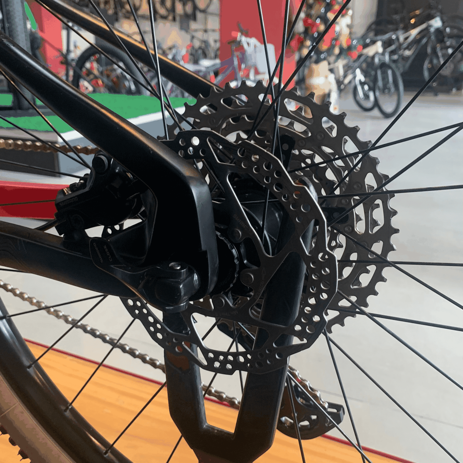 Equipada com o consagrado grupo Shimano Deore, a transmissão oferece mudanças precisas e eficientes, permitindo uma performance versátil em subidas e descidas.