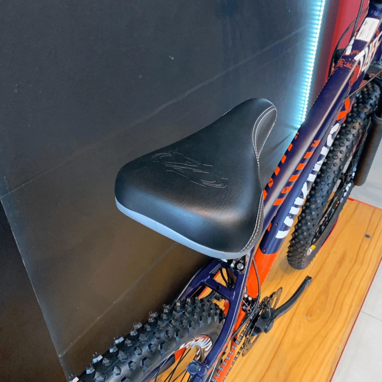 A suspensão dianteira em alumínio proporciona mais conforto ao absorver impactos em terrenos irregulares, enquanto o cockpit Absolute, com guidão de 740mm e mesa de 55mm, oferece controle e firmeza na pilotagem. Seu selim Pro X, aliado ao canote em alumínio, garante uma posição mais ergonômica e confortável durante o pedal.