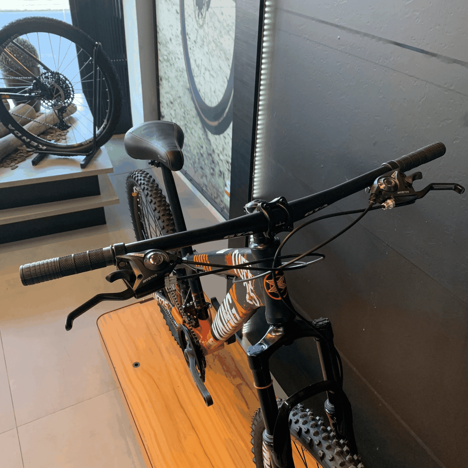 O cockpit foi projetado para ergonomia e controle: o guidão GTA de 705mm permite manobras ágeis e uma postura confortável, a mesa GTA de 55mm reforça a estabilidade na pilotagem, e o selim Comander de 145mm, com espuma de alta densidade, garante conforto em pedais prolongados. O canote em alumínio permite ajustes personalizados de altura, adaptando a bike à sua ergonomia. Disponível em cores vibrantes como roxo/laranja, preto/azul, preto/rosa ou grafite/amarelo (sujeito a disponibilidade), a Tuff 25 combina funcionalidade com um visual que reflete a energia do ciclismo Freeride.