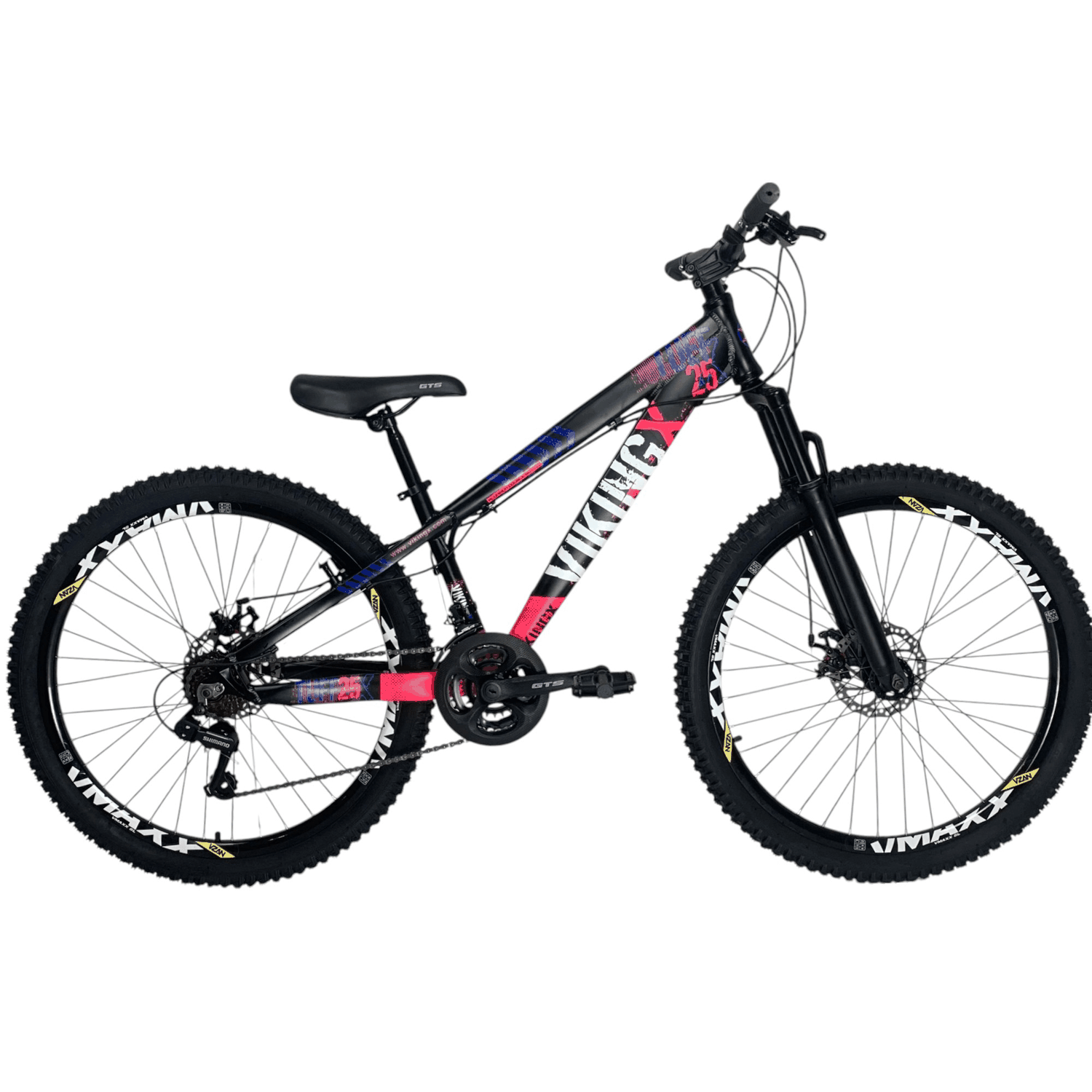 A Bicicleta VikingX Tuff-25 Aro 26 Shimano 21 Velocidades é uma mountain bike acessível e robusta, ideal para ciclistas iniciantes e intermediários que buscam versatilidade em trilhas leves, freeride ou deslocamentos urbanos. Com um quadro em alumínio Tuff-25, ela oferece um equilíbrio entre leveza e resistência, pesando aproximadamente 14kg. A transmissão Shimano 21 velocidades (3x7), equipada com câmbio dianteiro Tourney TZ e câmbio traseiro Shimano, garante trocas de marcha suaves e confiáveis, adaptando-se a diversos terrenos, desde subidas moderadas até descidas rápidas. Os freios a disco Paco com rotores de 160mm proporcionam frenagens seguras, enquanto a suspensão dianteira em alumínio absorve impactos, oferecendo conforto em terrenos irregulares. Com pneus Lotus 26x2.30 montados em aros Vzan Vmaxx SL, a Tuff-25 assegura aderência e estabilidade, perfeita para aventuras recreativas.