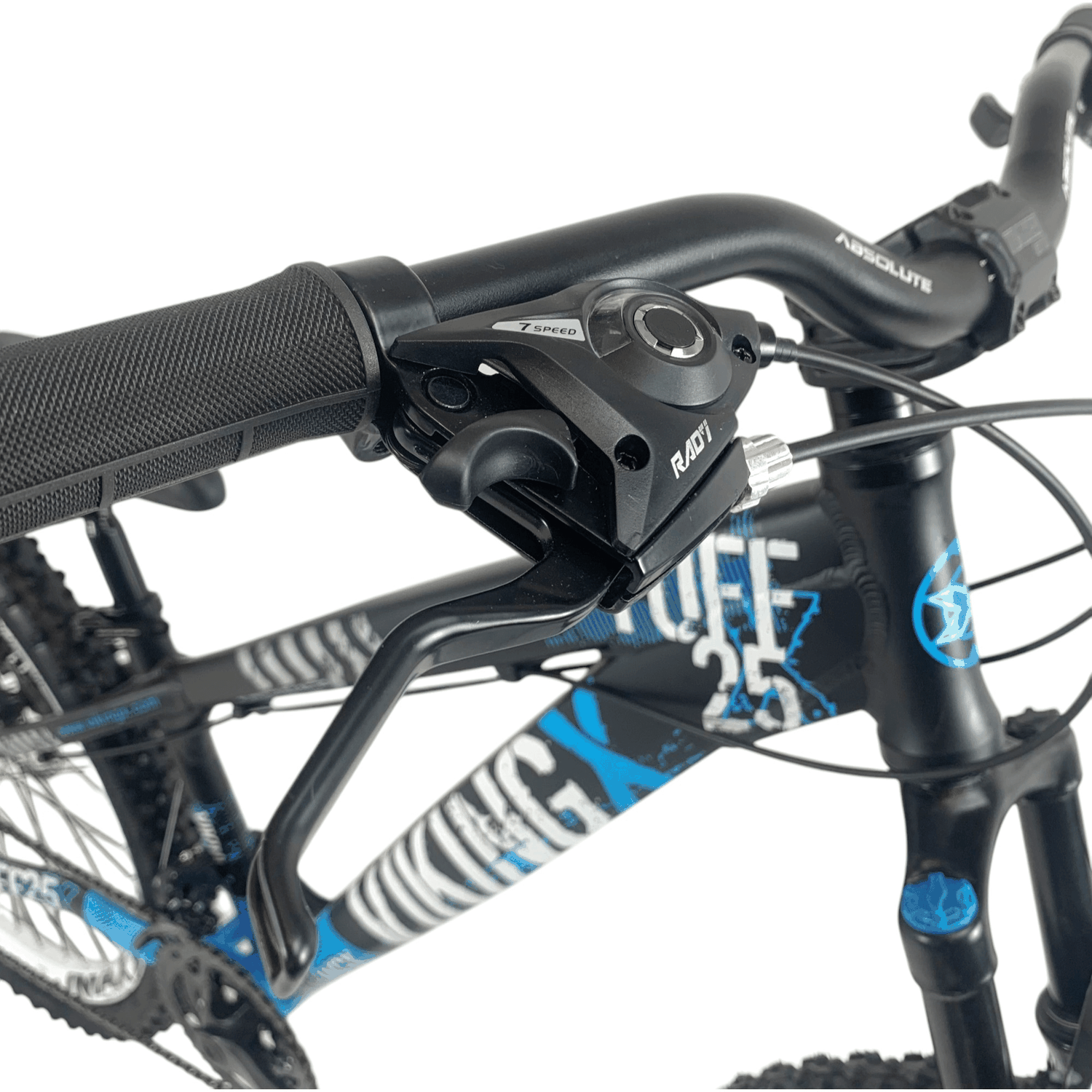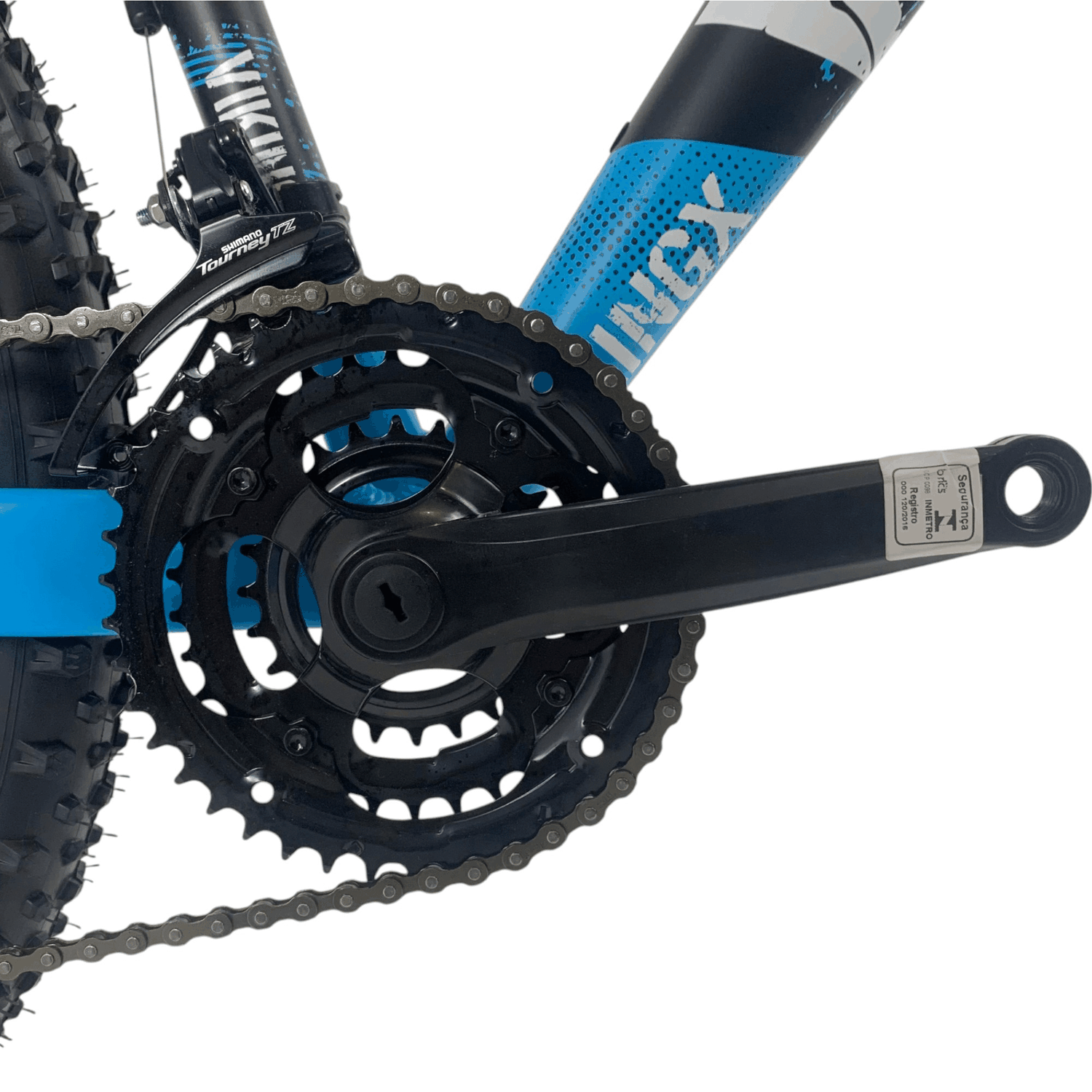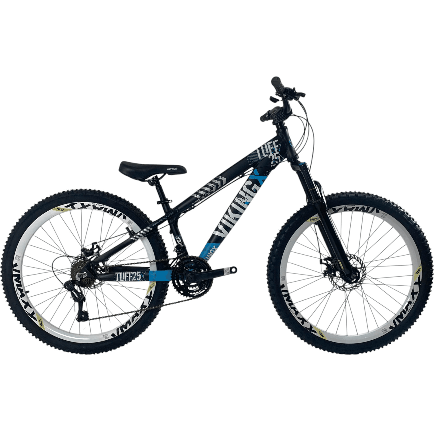 A Bicicleta VikingX Tuff 25 Aro 26 Tourney 21v é uma excelente escolha para ciclistas que buscam uma combinação de resistência, versatilidade e estilo. Com quadro em alumínio Double Butted e componentes Shimano, essa bike é robusta e confiável, com um design moderno nas cores preto, azul e branco.