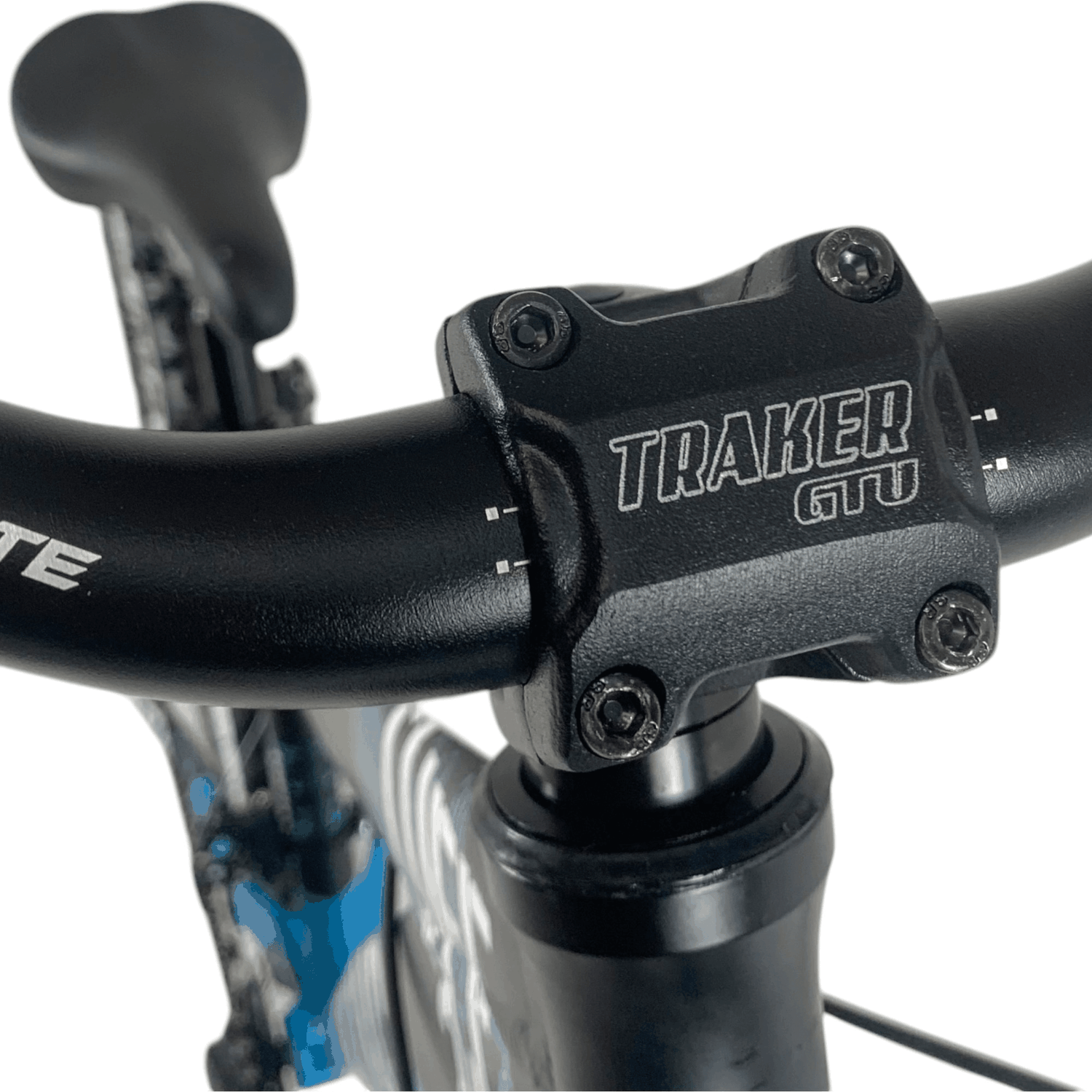 O guidão Absolute em alumínio de 730mm e a mesa Traker GTU de 35mm garantem controle e estabilidade. O canote em alumínio de 27,2mm e o selim Nitruz de 155mm proporcionam conforto adicional para longos percursos.