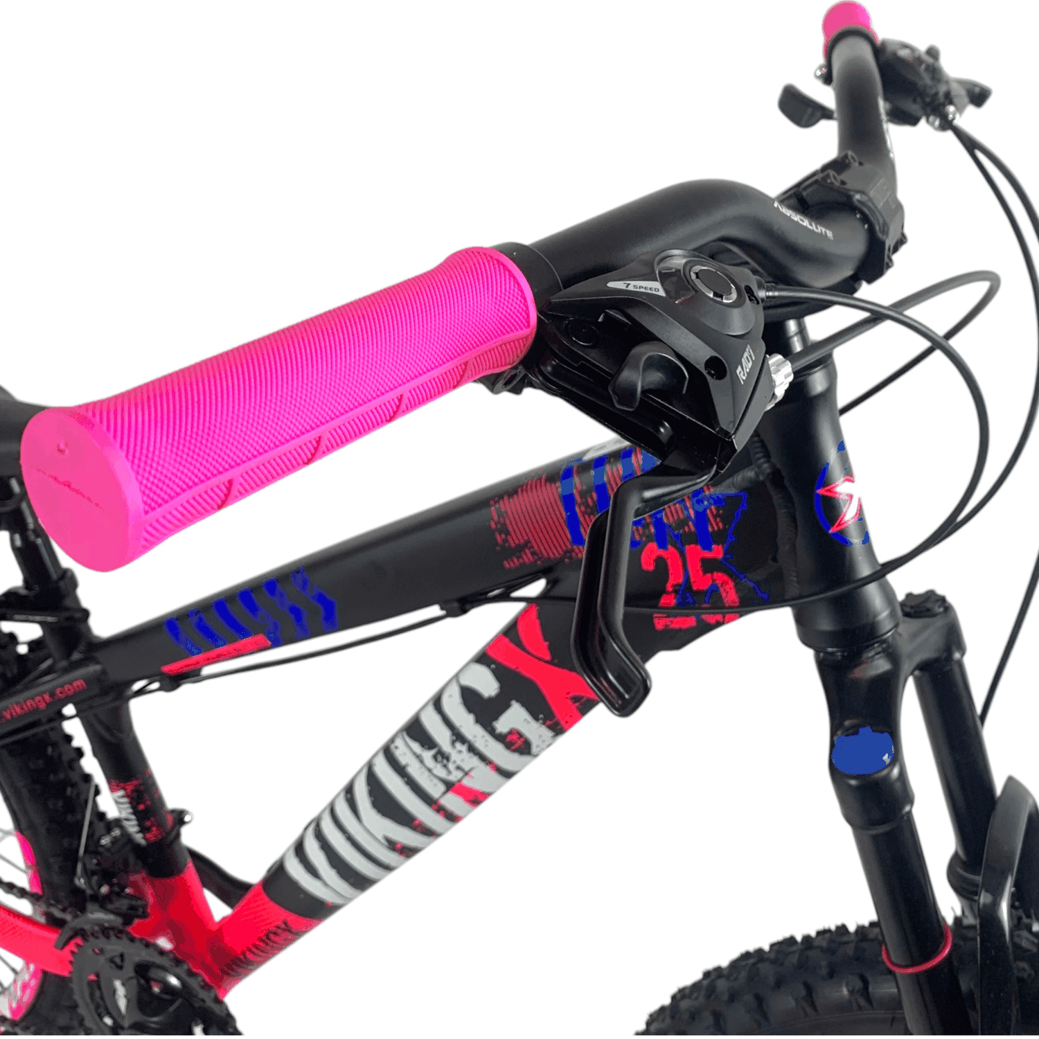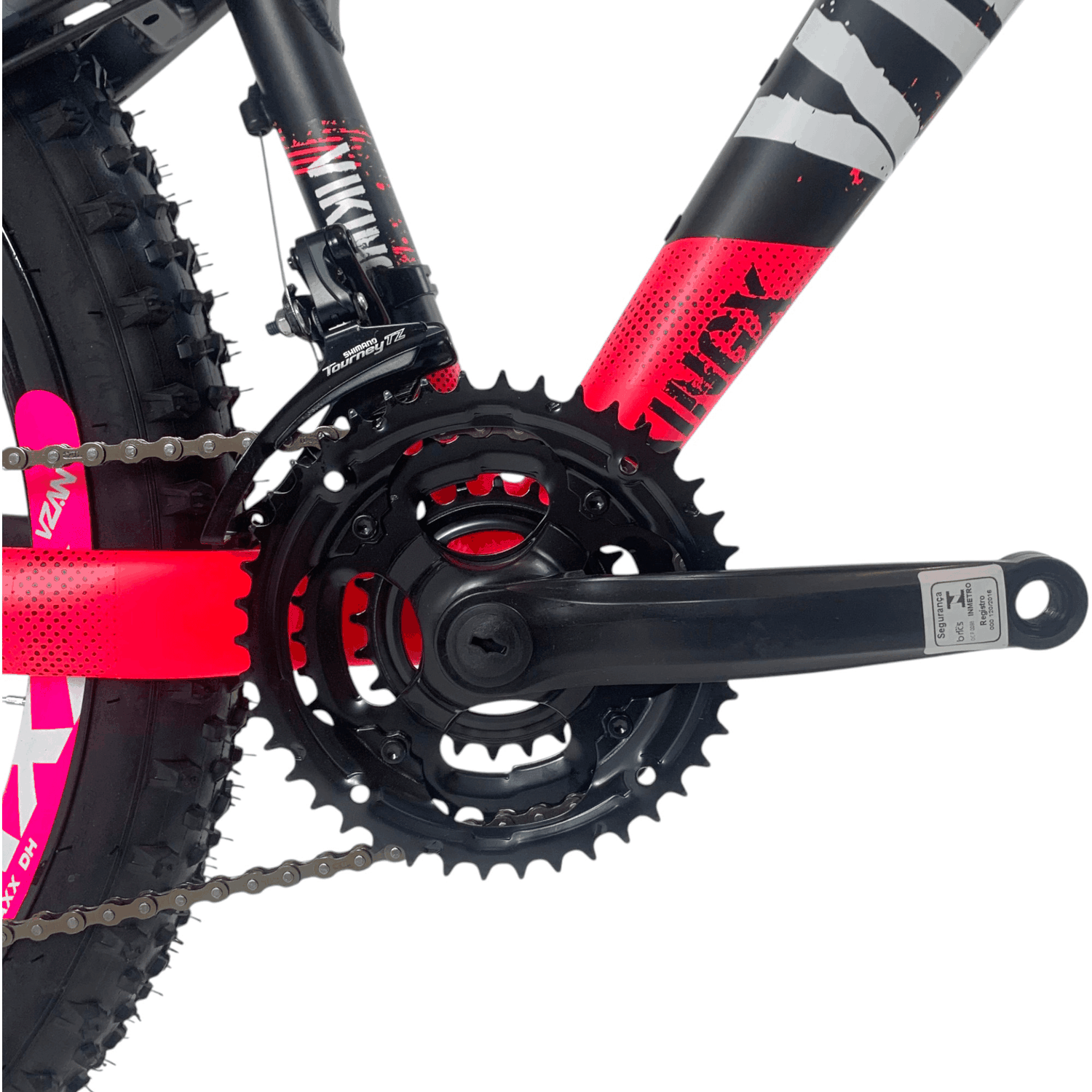 A Bicicleta VikingX Tuff 25 Aro 26 Tourney 21v é a escolha perfeita para ciclistas que buscam uma bike de alto desempenho com design vibrante. Com quadro em alumínio Double Butted e componentes Shimano, essa bike oferece resistência, conforto e estilo nas cores preto, rosa e azul.