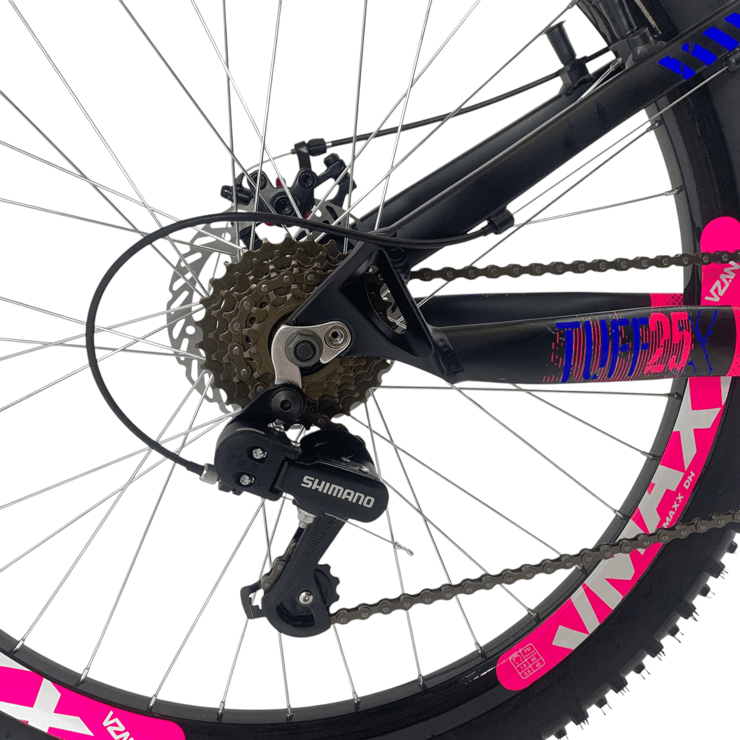 Bicicleta VikingX Tuff 25 Aro 26 Tourney 21v Preto, Rosa e Azul - Versatilidade e Estilo para Trilhas e Passeios!