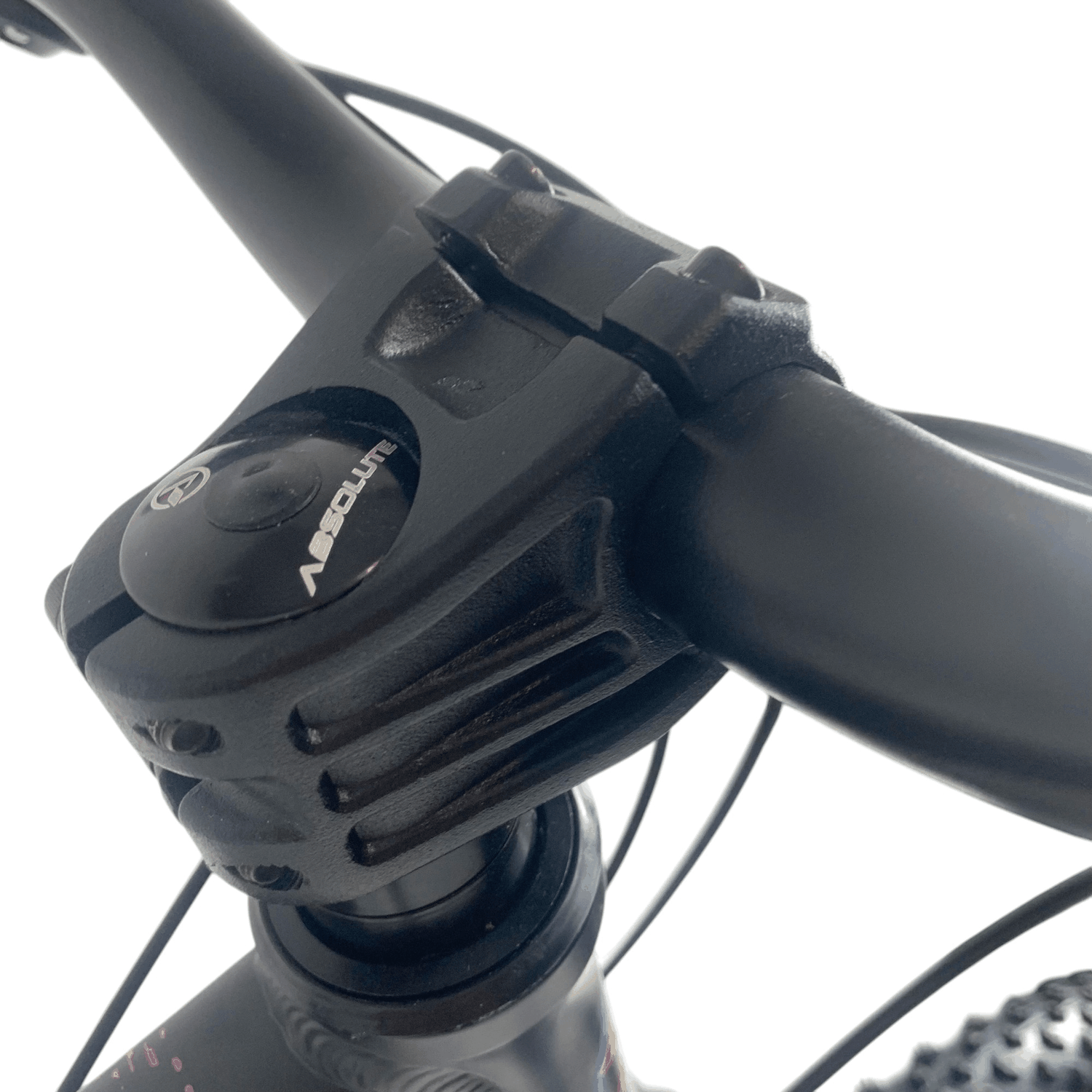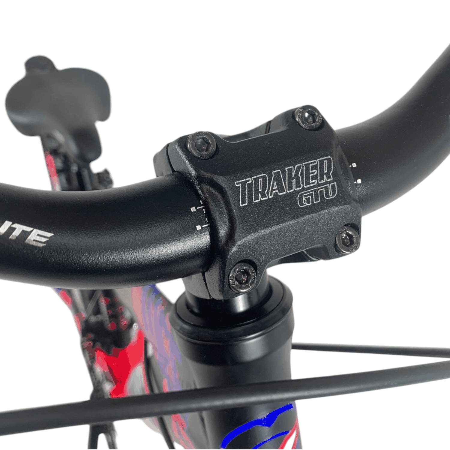 O guidão Absolute em alumínio de 730mm e a mesa Traker GTU de 35mm proporcionam controle e estabilidade nas pedaladas. Com o canote em alumínio de 27,2mm e o selim Nitruz de 155mm, esta bike oferece conforto adicional. As manoplas de borracha rosa adicionam um toque de estilo ao conjunto.