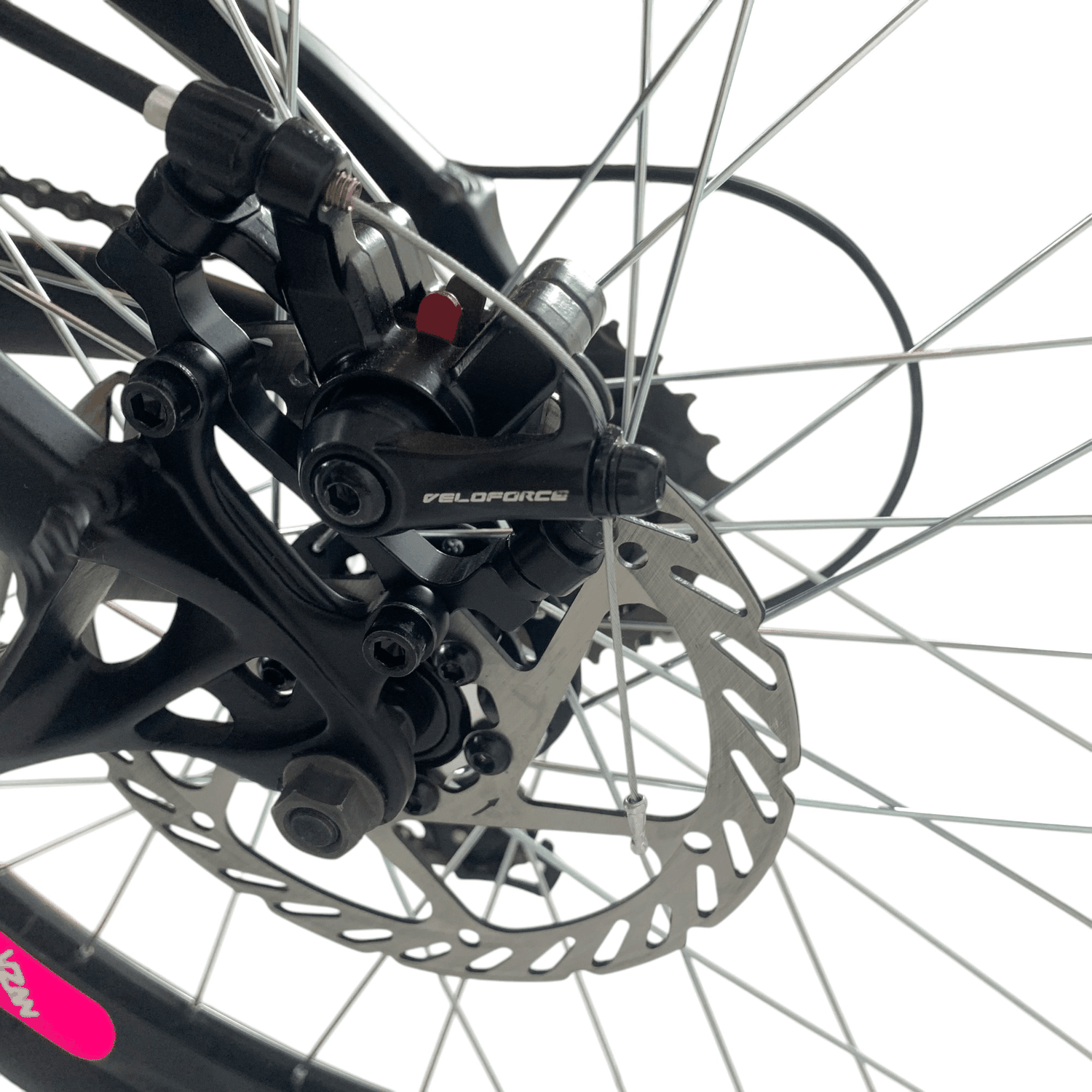 Os freios a disco mecânicos com rotores de 160mm garantem uma frenagem segura e eficaz, proporcionando controle total, mesmo em descidas íngremes e condições adversas.