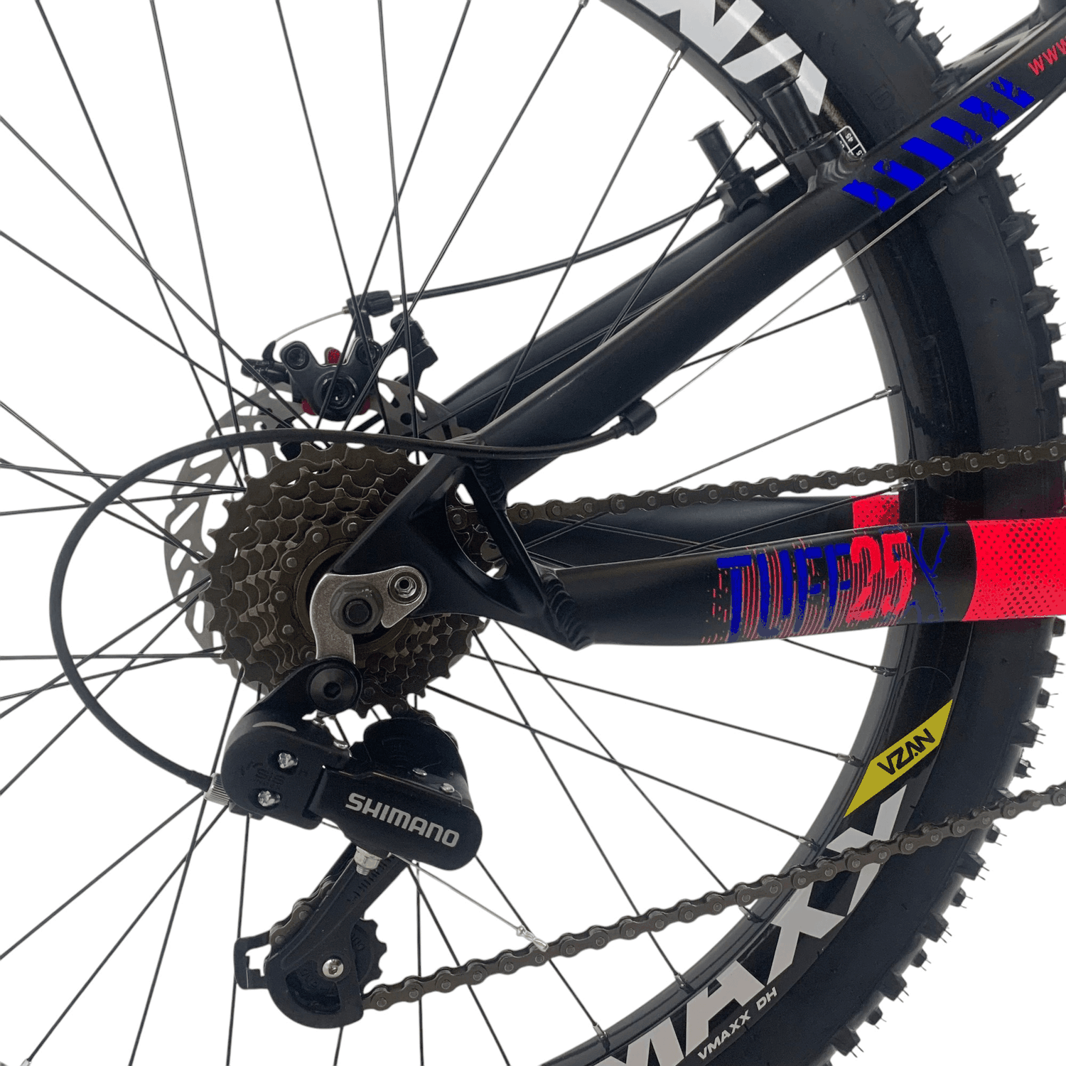 A Bicicleta VikingX Tuff 25 Aro 26 Tourney 21v é perfeita para ciclistas que buscam uma bike resistente, versátil e com estilo diferenciado. Com um quadro em alumínio Double Butted e componentes Shimano, essa bike proporciona durabilidade, estabilidade e performance em trilhas e passeios. O design nas cores preto, rosa e azul acrescenta um toque de modernidade e ousadia.