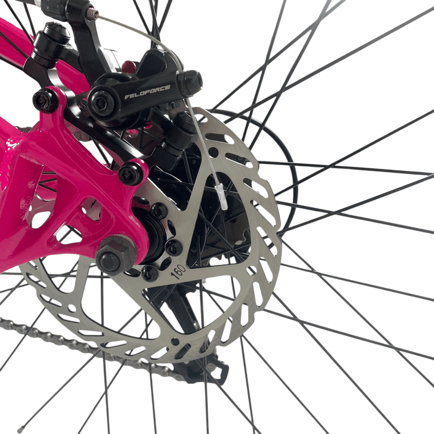 Os freios a disco mecânicos com rotores de 160mm proporcionam uma frenagem segura e eficiente, garantindo total controle mesmo em descidas e condições adversas.