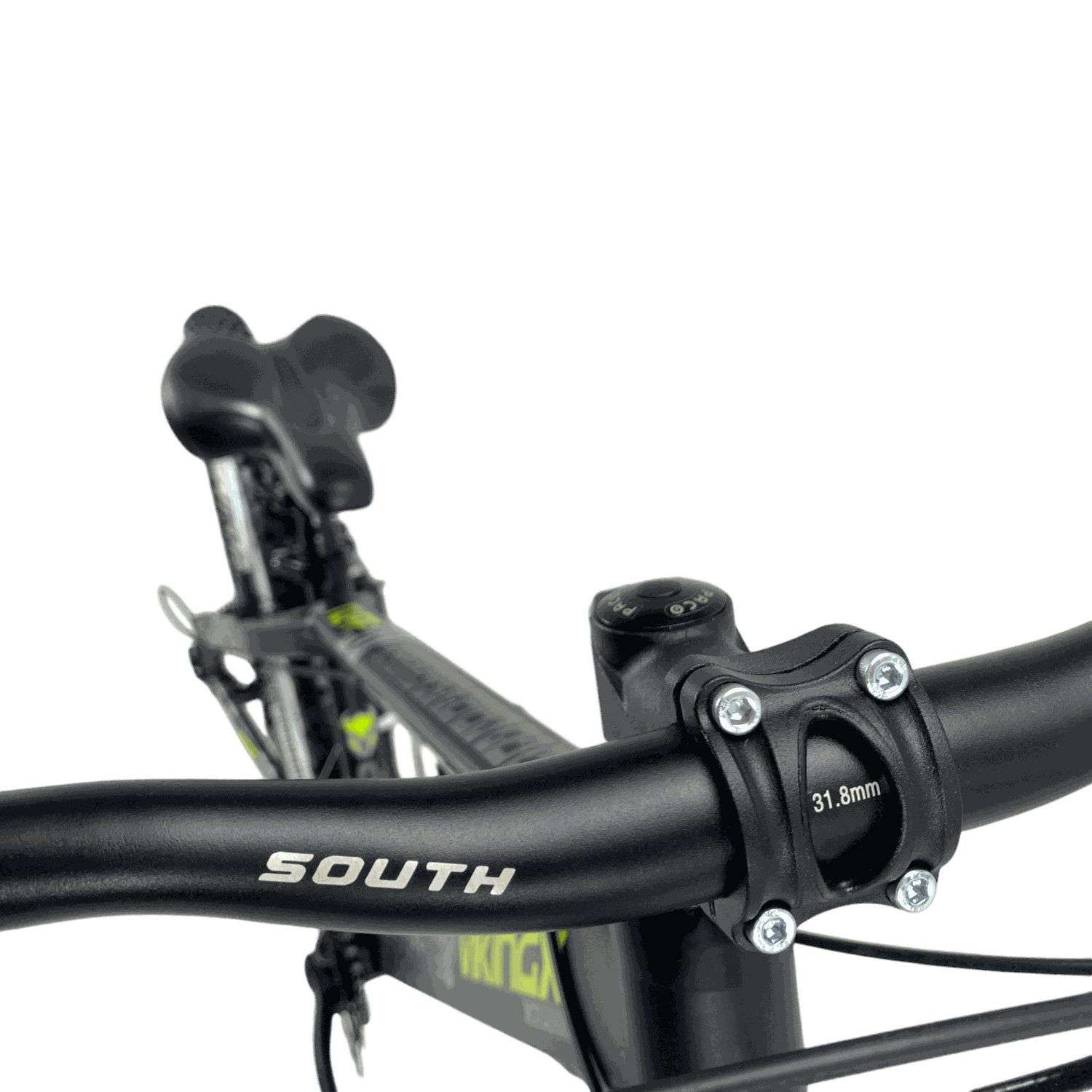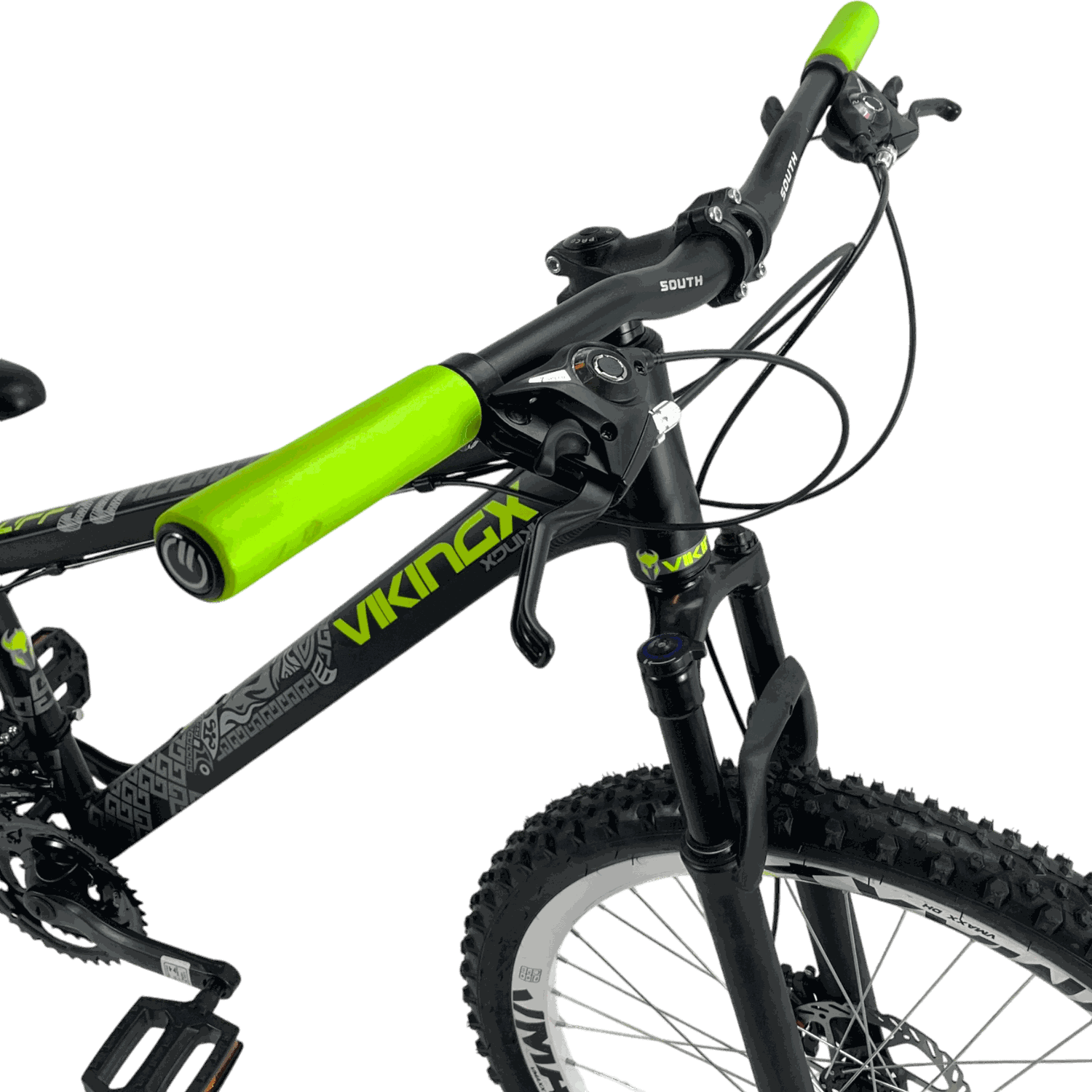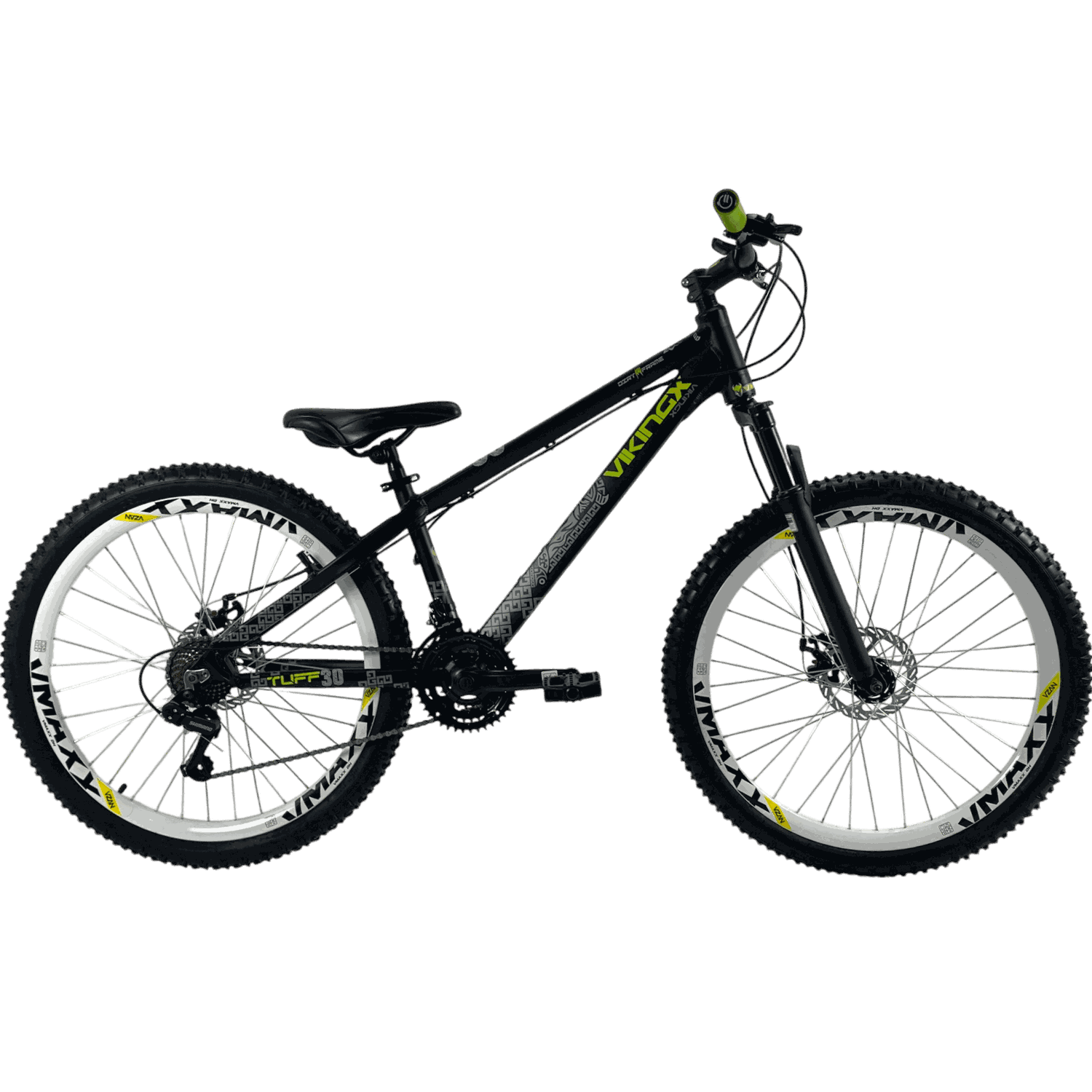 A Bicicleta VikingX Tuff 30 Aro 26 Shimano 21v é ideal para ciclistas que buscam uma bike robusta e versátil, pronta para enfrentar trilhas e estradas com confiança. Com um design moderno nas cores preto, verde e cinza, esta bicicleta combina estilo, conforto e desempenho. Garanta a sua e esteja preparado para qualquer aventura!