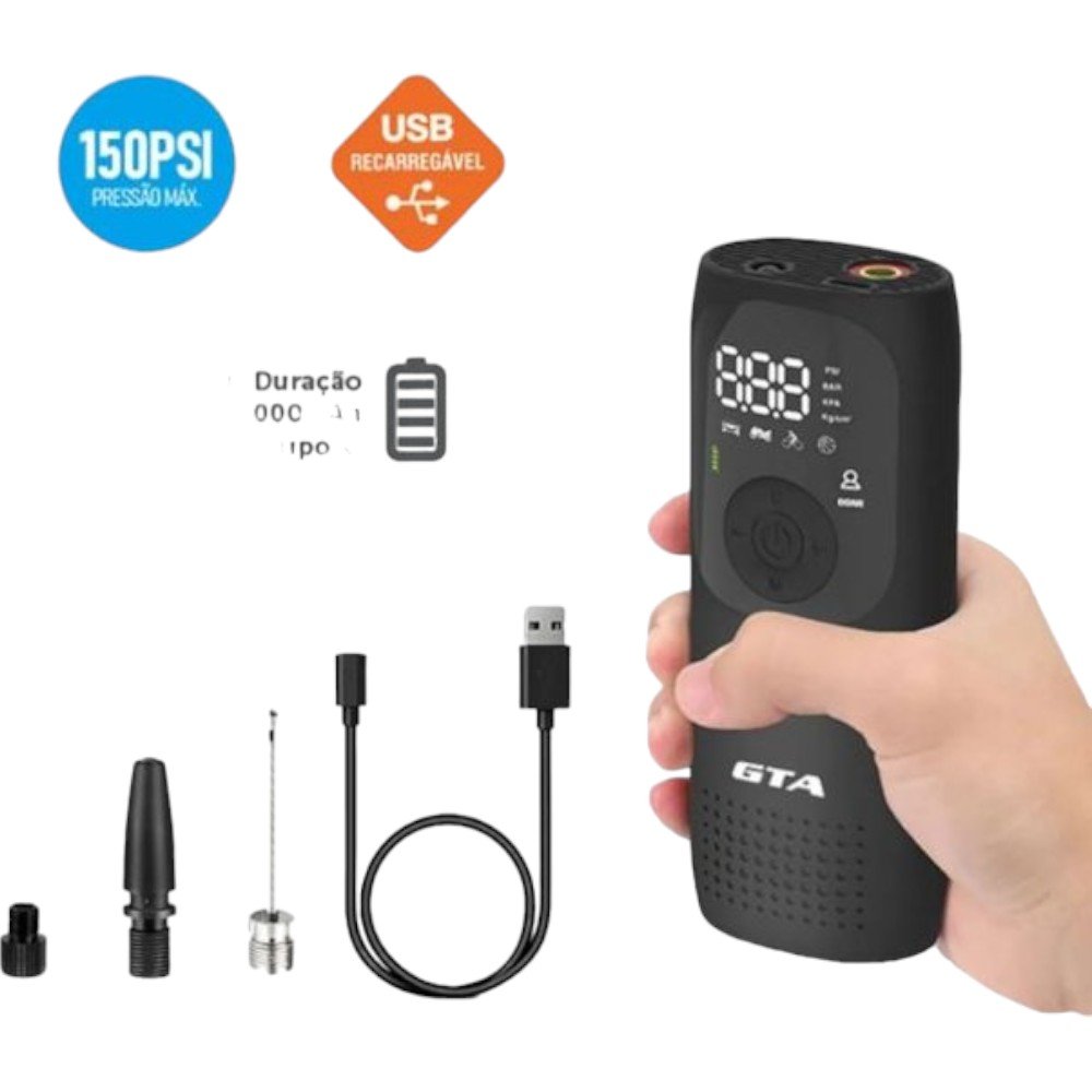 A Bomba de Ar Elétrica GTA Smart Plus redefine o padrão para acessórios de enchimento, combinando tecnologia moderna, design ergonômico e uma série de características inteligentes para oferecer uma experiência superior. Esteja você preparando-se para uma viagem ou mantendo seus equipamentos esportivos prontos para uso, esta bomba é a escolha certa para garantir eficiência e conveniência.