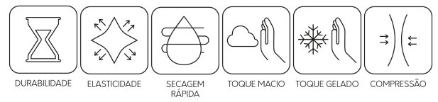 Tecido: Poliamida com Elastano e tecnologia Emana®;
