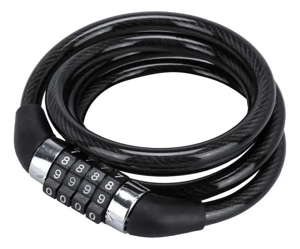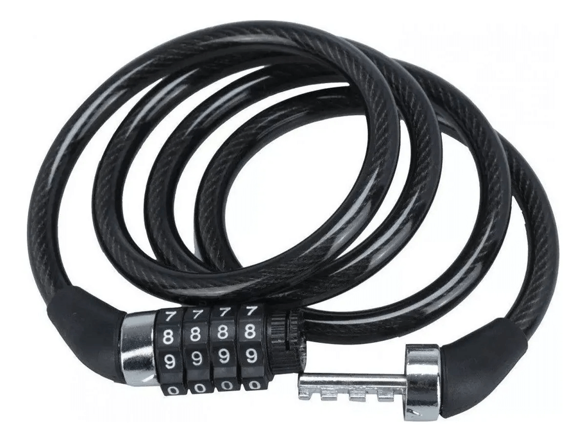Comprimento de 1 Metro: Design em espiral que oferece flexibilidade para travar a bike em postes, racks ou outras estruturas.