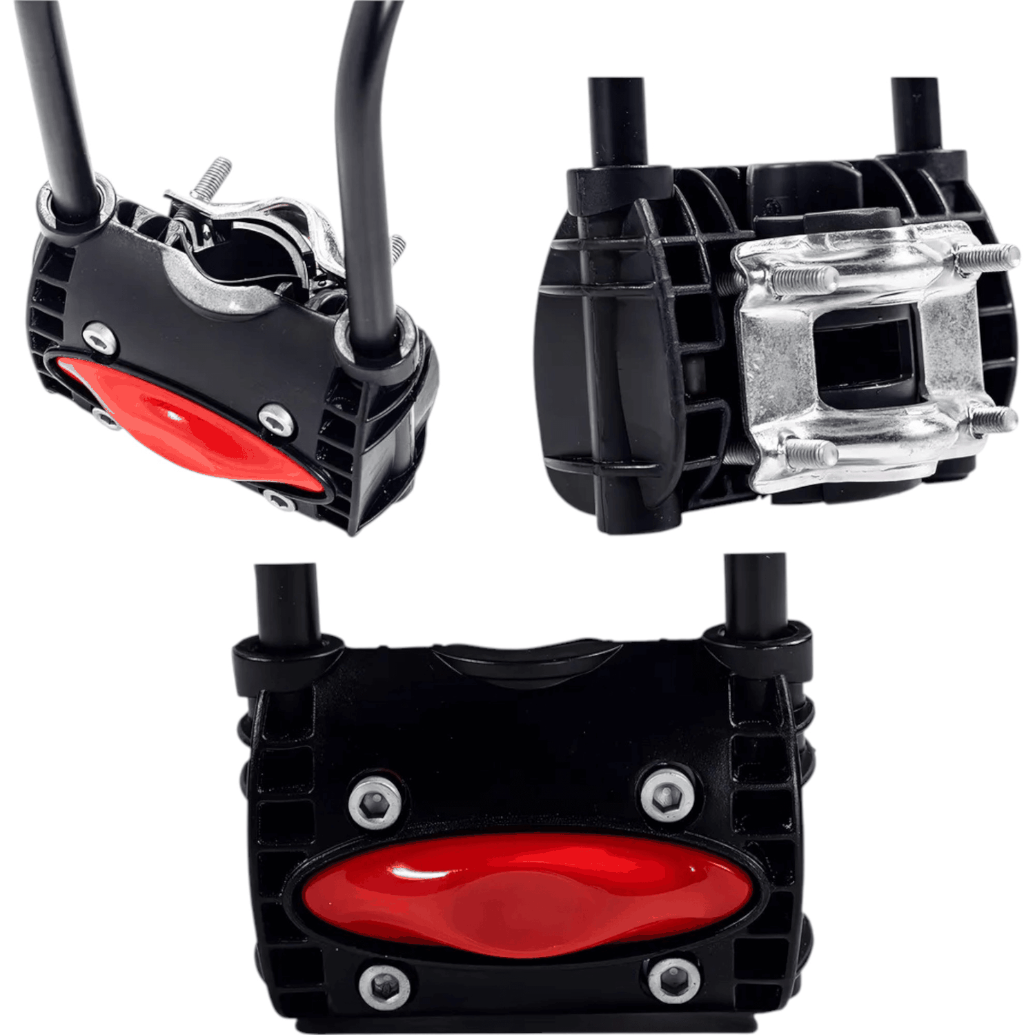 - Fixação: Dianteira, compatível com quadros de tubos redondos e ovais de 30-35 mm;