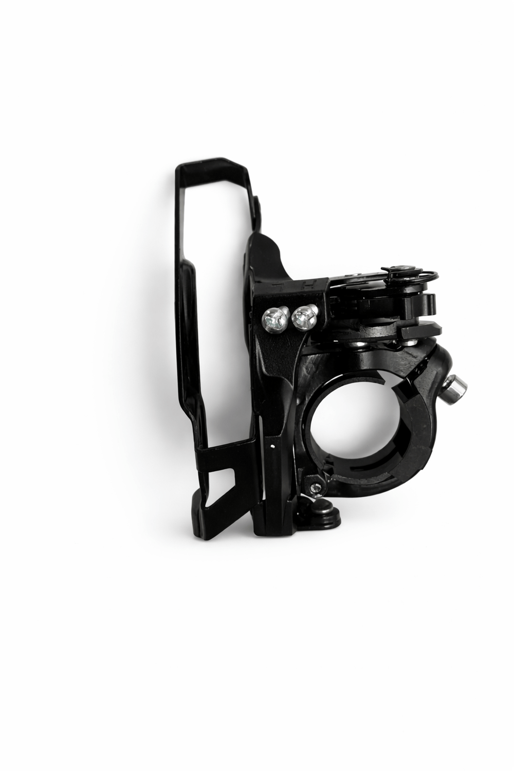 Compatível com abraçadeiras 31.8mm e 34.9mm, garante encaixe seguro e firme, proporcionando alinhamento eficiente da corrente e melhor desempenho nas trocas entre coroas. Seu acabamento em preto traz visual discreto e moderno, combinando com diversos estilos de bike MTB ou urbana.