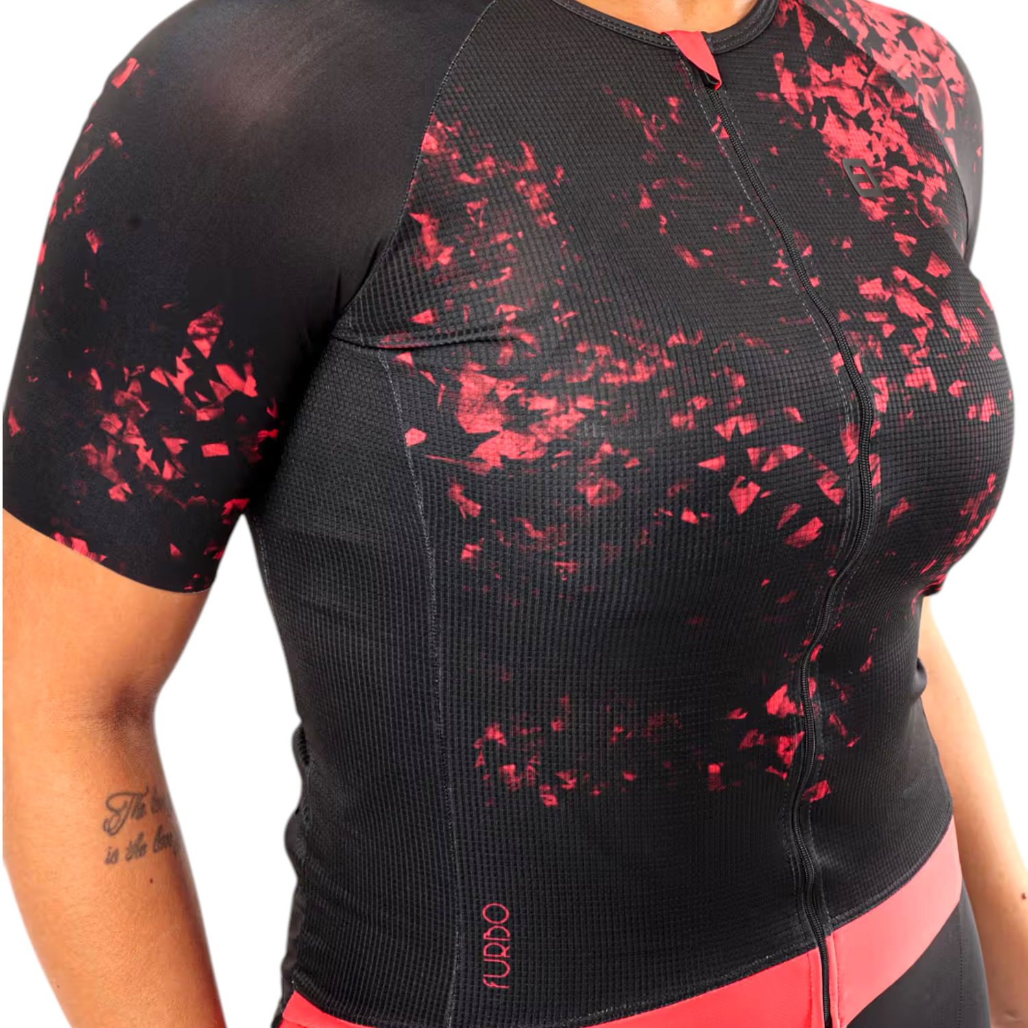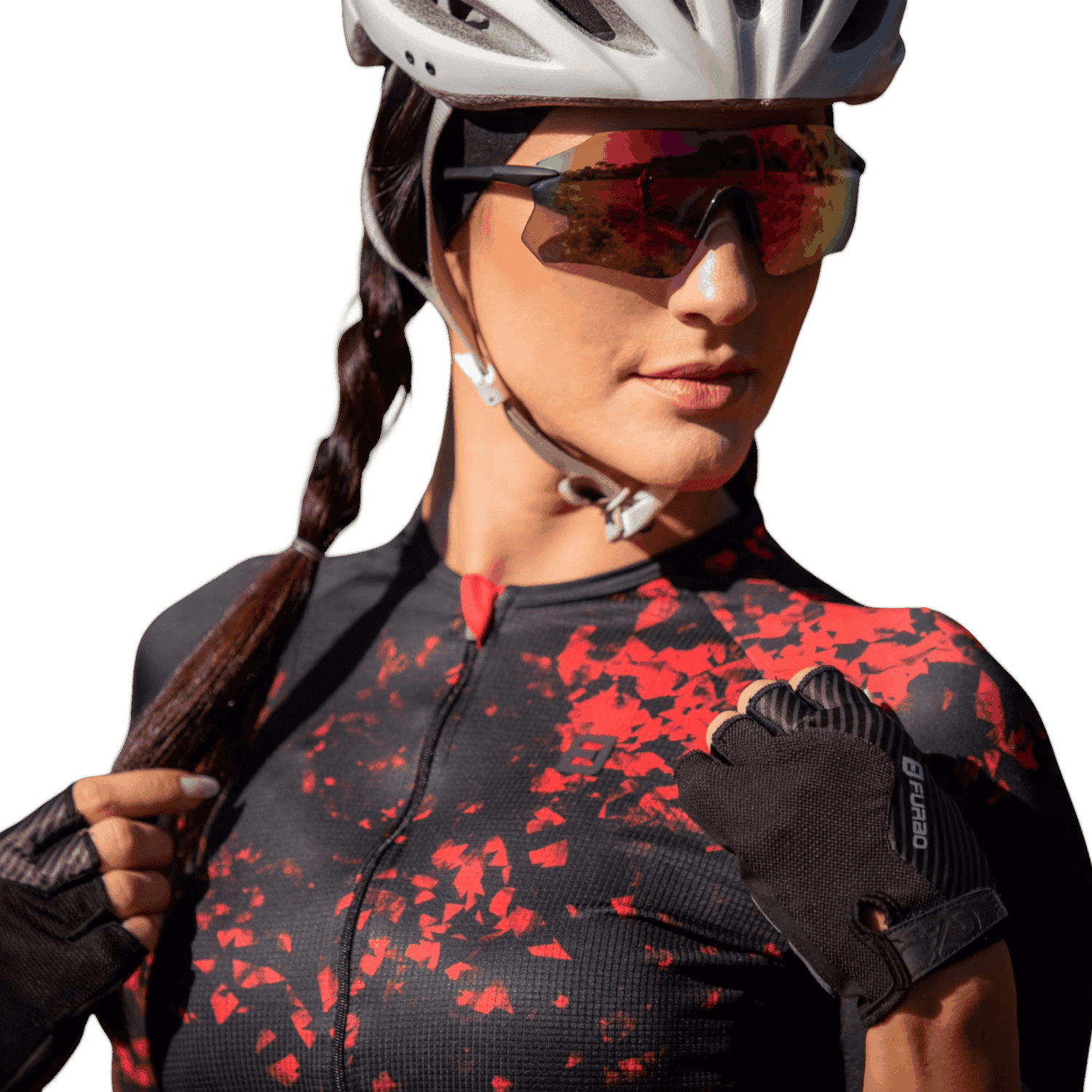 Camisa Ciclismo Feminina Furbo Donna Ragazza Blast Preto e Vermelho - Performance e Proteção em Todos os Pedais