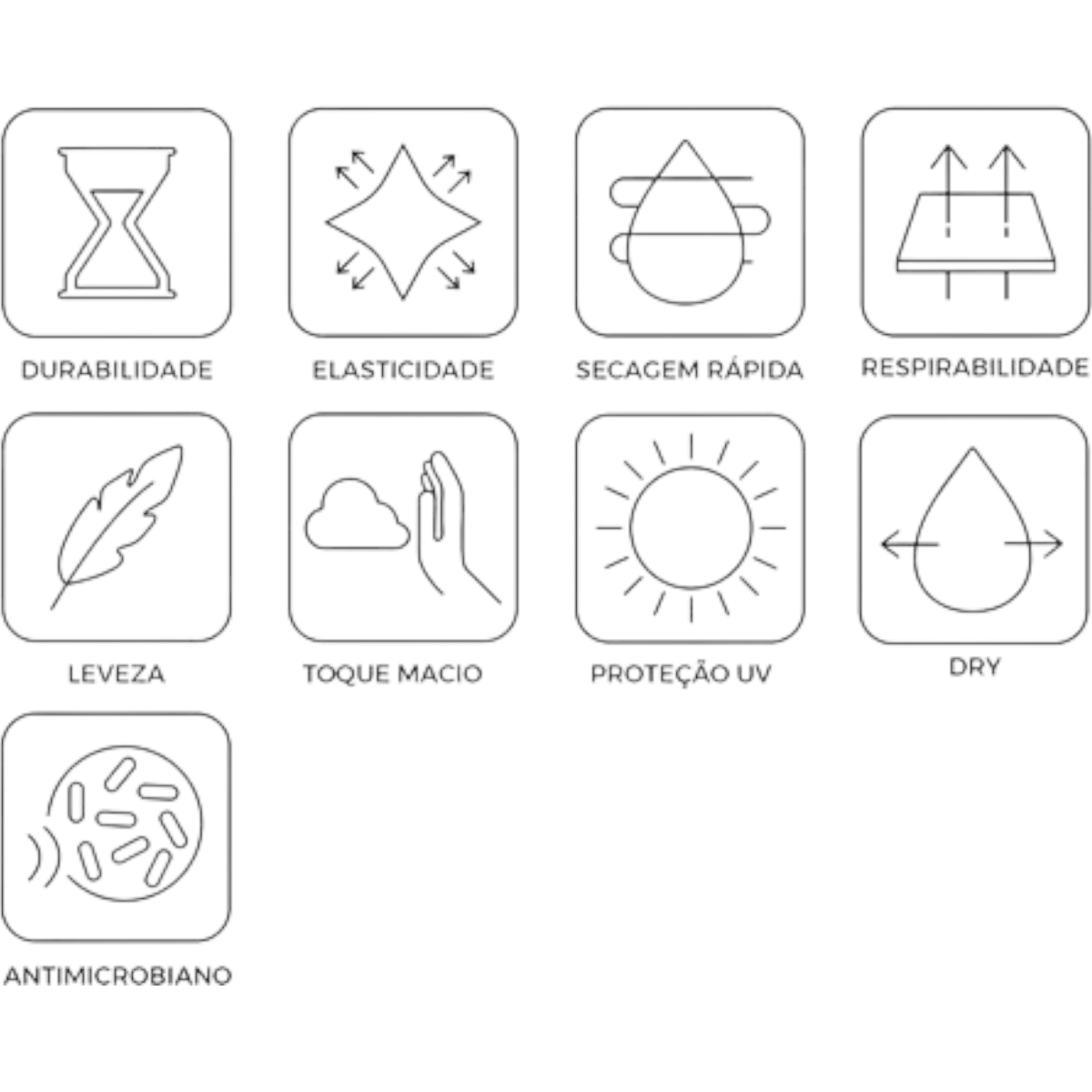 - Material: Poliéster com Elastano;
