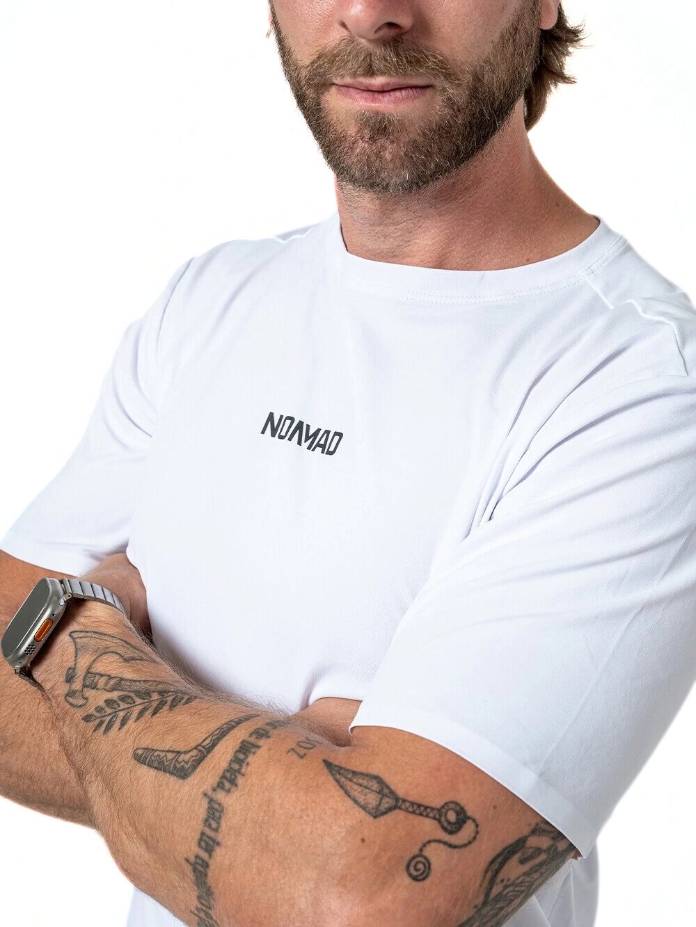 Camisa Masculina Nomad Trail Run Branca Curta Leve e Respirável