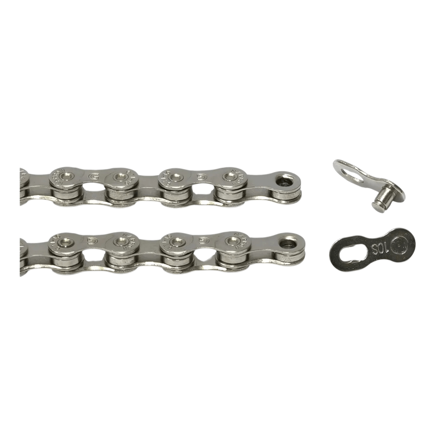 Fabricada com materiais de alta resistência à tração e desgaste, essa corrente proporciona longa vida útil e excelente desempenho tanto em pedais urbanos quanto em trilhas. Seu design otimizado reduz o atrito e melhora a resposta nas trocas, resultando em uma pedalada mais fluida e eficiente.