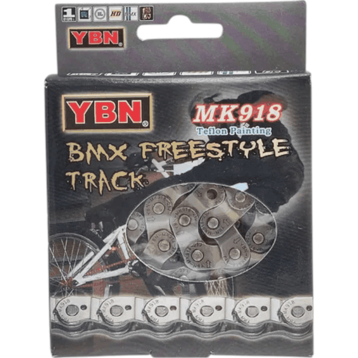 Corrente YBN MK918 Half Link 1/2" x 1/8" – Resistência e Estilo para BMX e Dirt Jump