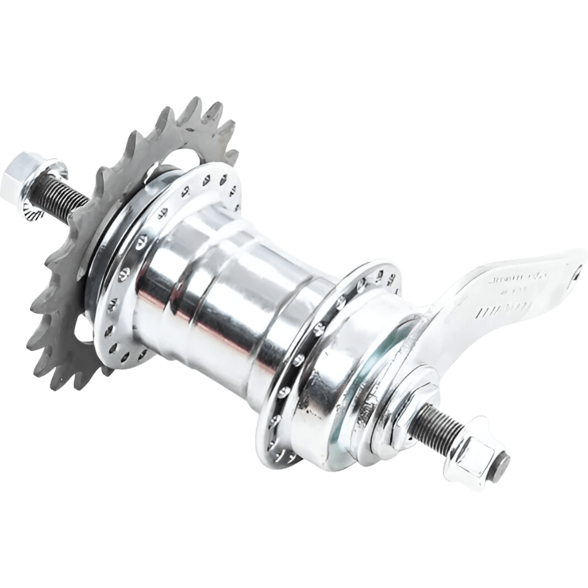 Projetado para ser compatível com catraca (pinhão) de rosca ou encaixe com 20 dentes, o cubo é fácil de instalar e manter. Sua construção robusta assegura uma longa vida útil, mesmo sob condições de uso intensivo.