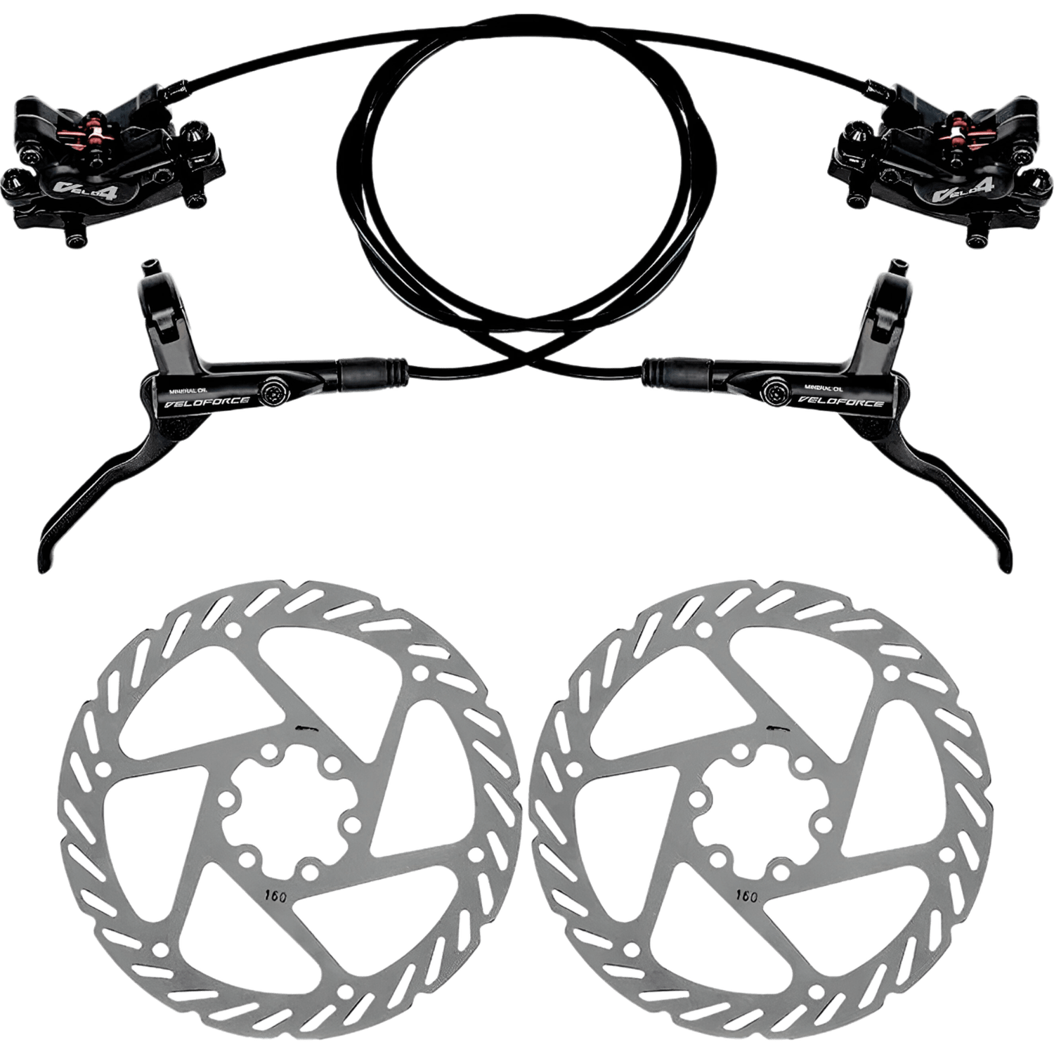 O Freio a Disco Hidráulico Veloforce Velo4 oferece um sistema de frenagem de 4 pistões que garante uma força de frenagem poderosa e modulada nos rotores, perfeito para condições de pilotagem desafiadoras. Fabricado com um design fino e acabamento de alta qualidade, é uma escolha confiável para ciclistas exigentes.