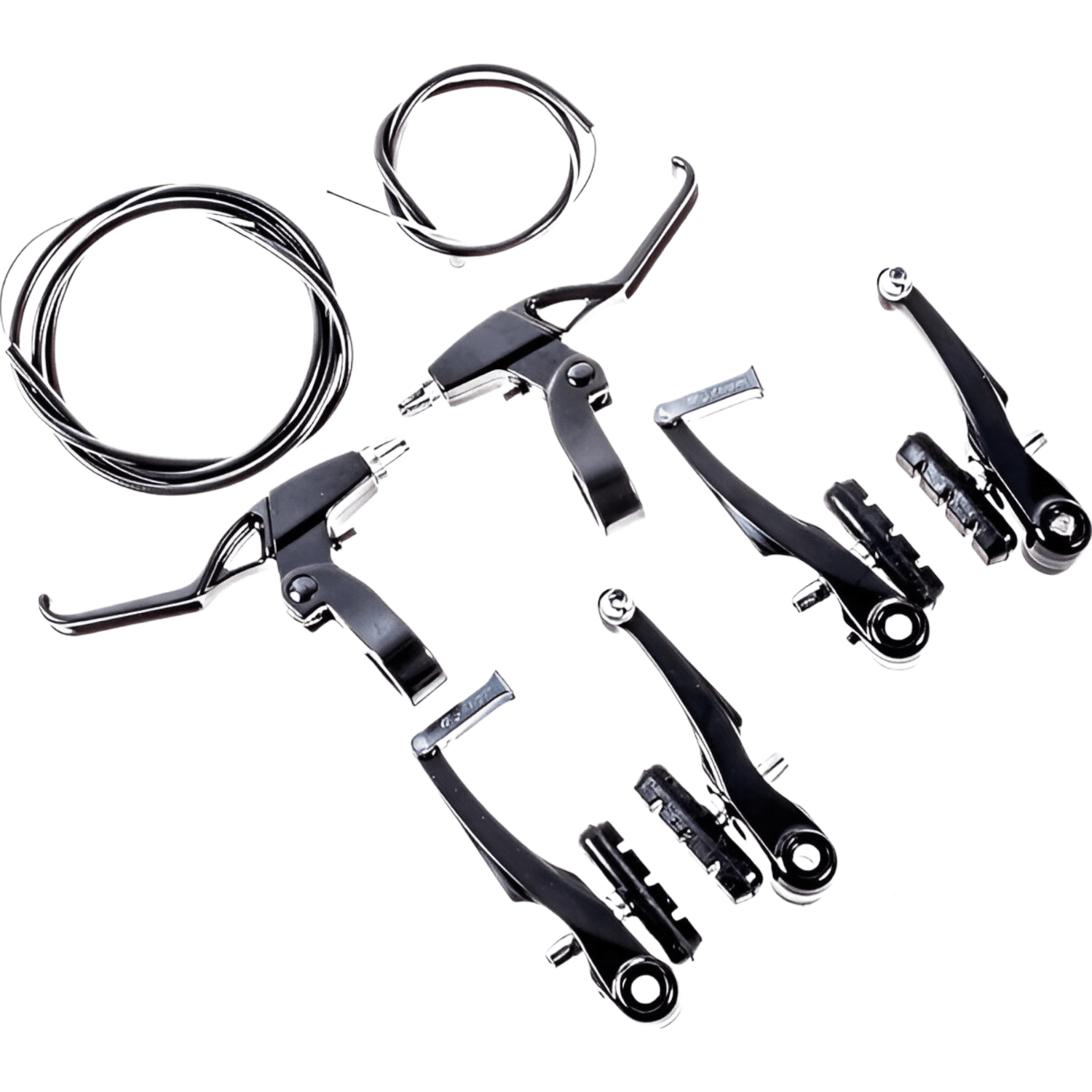 Além de sua funcionalidade, o freio V-Brake apresenta um acabamento preto elegante que complementa a estética da sua bicicleta, mantendo a integridade e a funcionalidade dos componentes.