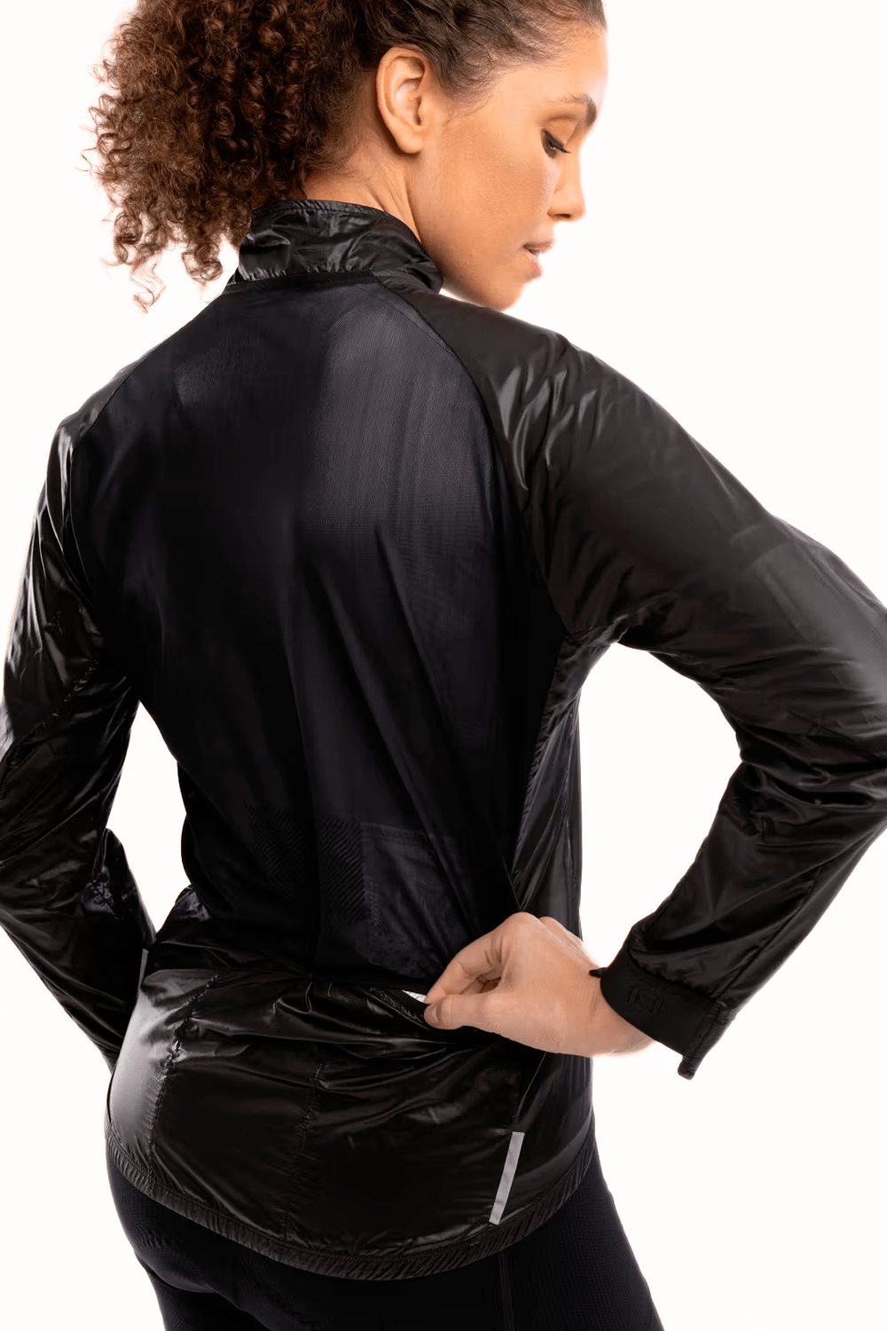 Fabricada com tecido ultraleve e resistente, a jaqueta atua como uma eficiente barreira contra o vento, ajudando a manter a temperatura corporal estável durante o pedal. Seu grande diferencial é o sistema Pocket, que permite dobrar a jaqueta e guardá-la facilmente no bolso da camisa de ciclismo ou mochila, ocupando pouquíssimo espaço.