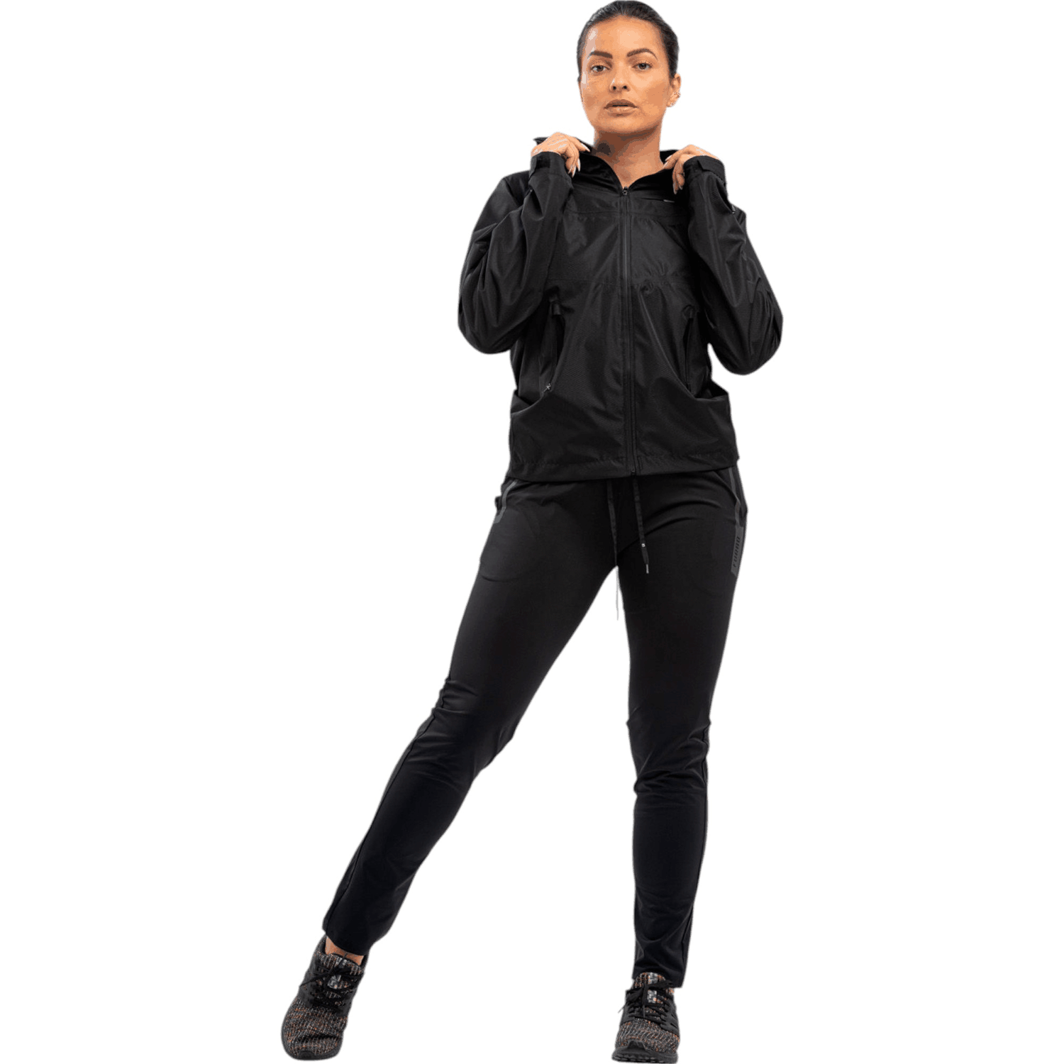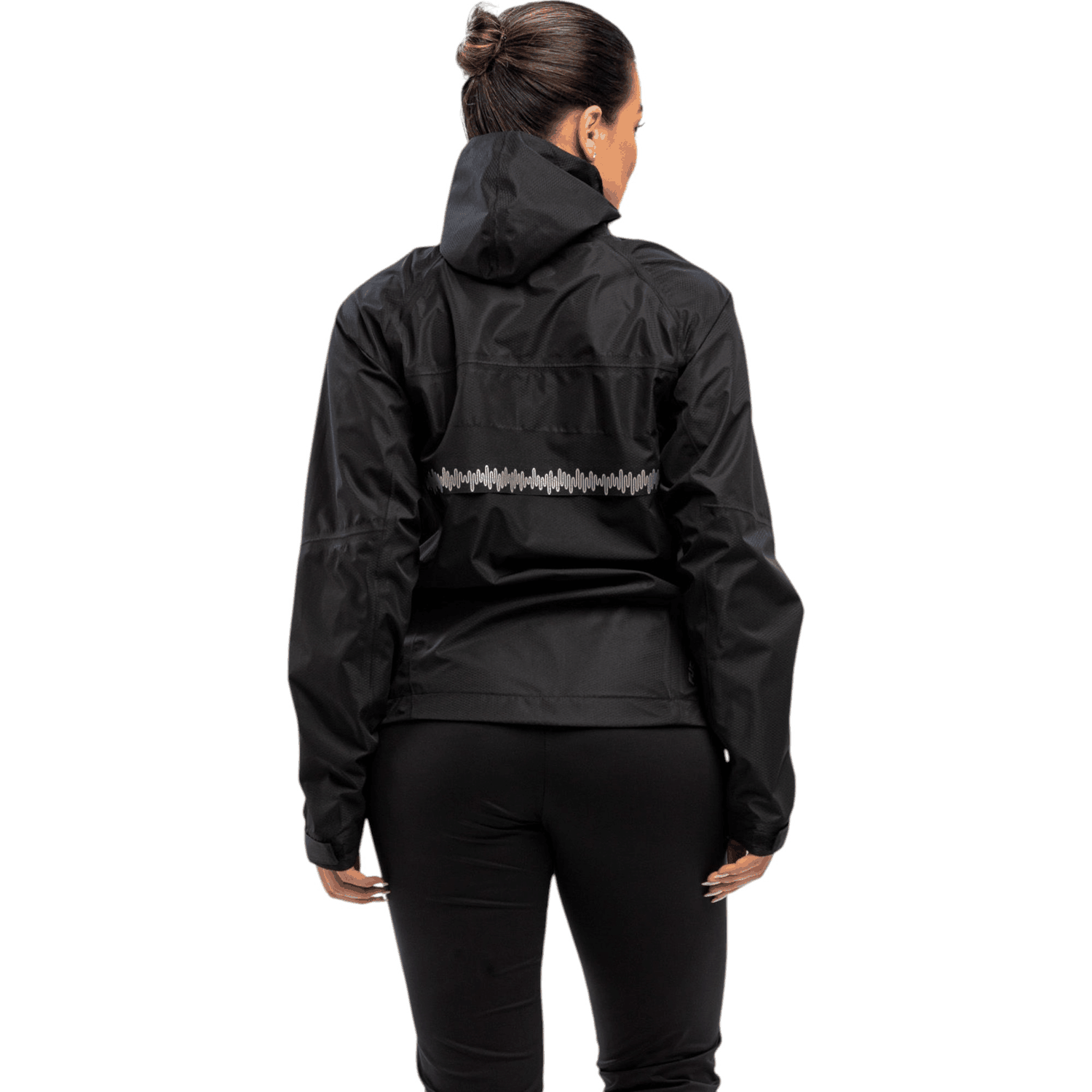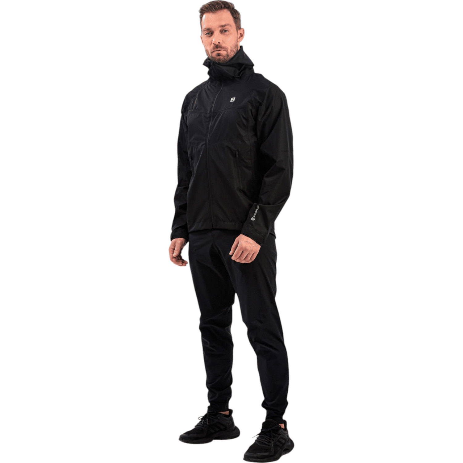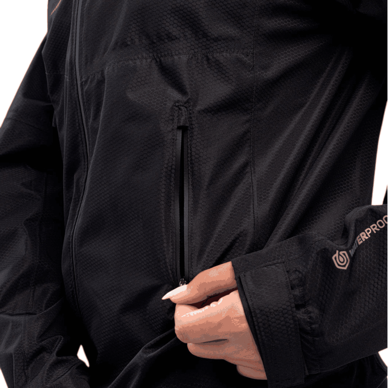 Confeccionada em 100% poliéster com revestimento em TPU respirável e textura de favos de mel, a jaqueta é leve (apenas 233 gramas) e oferece proteção total contra vento e água, desde chuvas leves até as mais intensas. Todas as costuras internas possuem fita selante italiana, garantindo 100% de impermeabilização. O zíper frontal inteligente e impermeável facilita ajustes térmicos e adiciona sofisticação, enquanto os bolsos dianteiros com zíperes impermeáveis asseguram o armazenamento seguro de itens essenciais, como celular, chaves ou barras energéticas. Detalhes refletivos aumentam a visibilidade em condições de baixa luminosidade, garantindo segurança em atividades noturnas. O capuz ajustável e os punhos com velcro oferecem proteção adicional e ajuste personalizado, enquanto uma saída de ar nas costas promove respirabilidade.