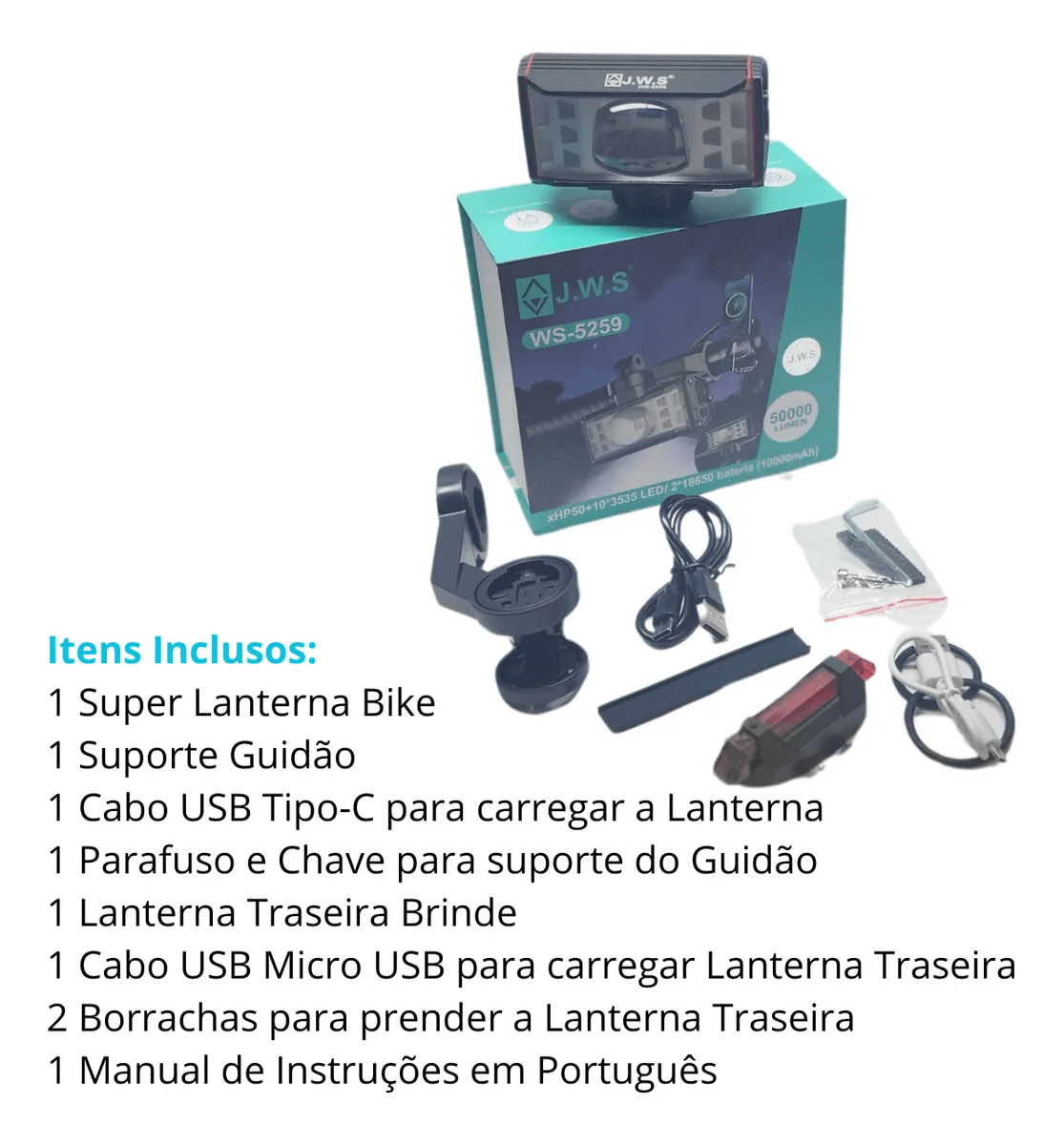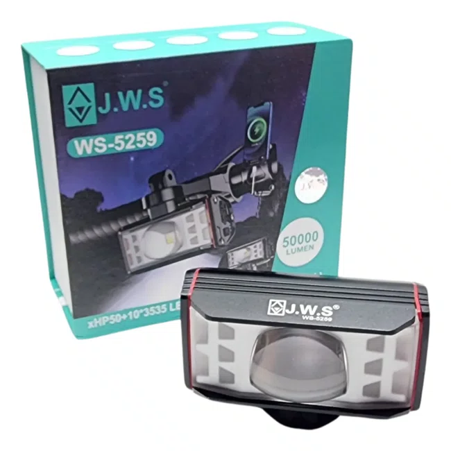 Kit Farol JWS WS-5259 50.000 Lumens + Sinalizador 10 Lumens – Iluminação Potente para Pedais Noturnos