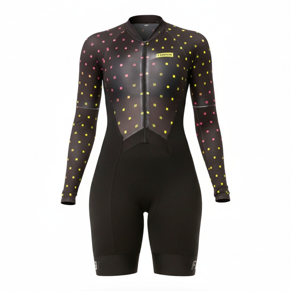 Macaquinho Feminino Furbo Emana New Brand com Manguito Preto, Rosa e Amarelo - Conforto e Desempenho em Pedaladas de Média Distância