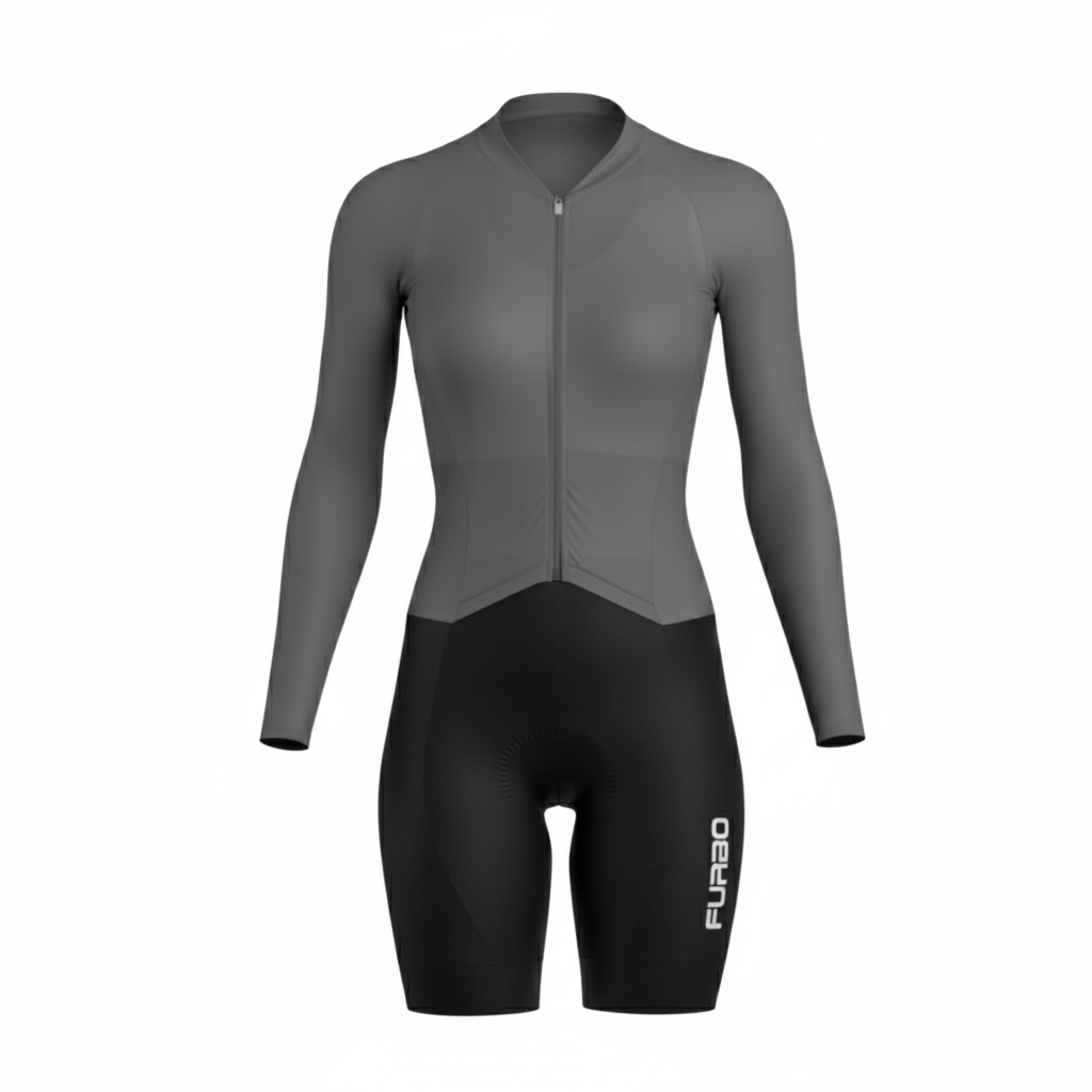 O Macaquinho Furbo Essence Feminino Manga Longa HT90 Cinza foi desenvolvido para ciclistas que buscam máximo desempenho, proteção e elegância. Produzido em tecido tecnológico de alta respirabilidade, garante excelente ventilação, secagem rápida e compressão equilibrada para melhorar a estabilidade muscular durante o pedal. Equipado com forro italiano de alta performance, o modelo é indicado para pedais de até 6 horas, oferecendo conforto superior mesmo em longas distâncias.