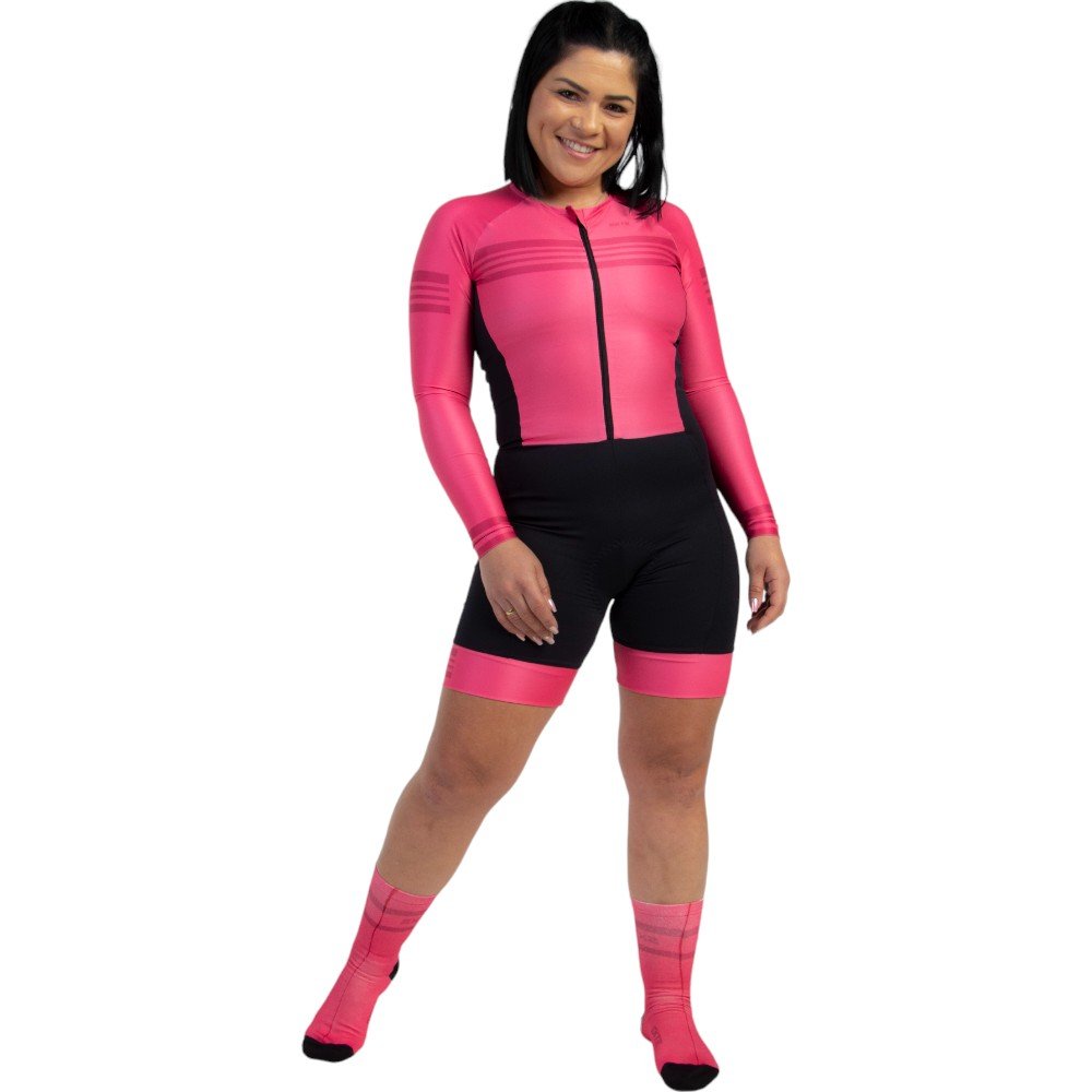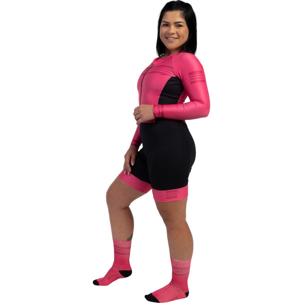 Macaquinho Ciclismo Feminino SportXtreme Adventure Manga Longa Ágata Rosa - Conforto e Estilo para Todas as Pedaladas