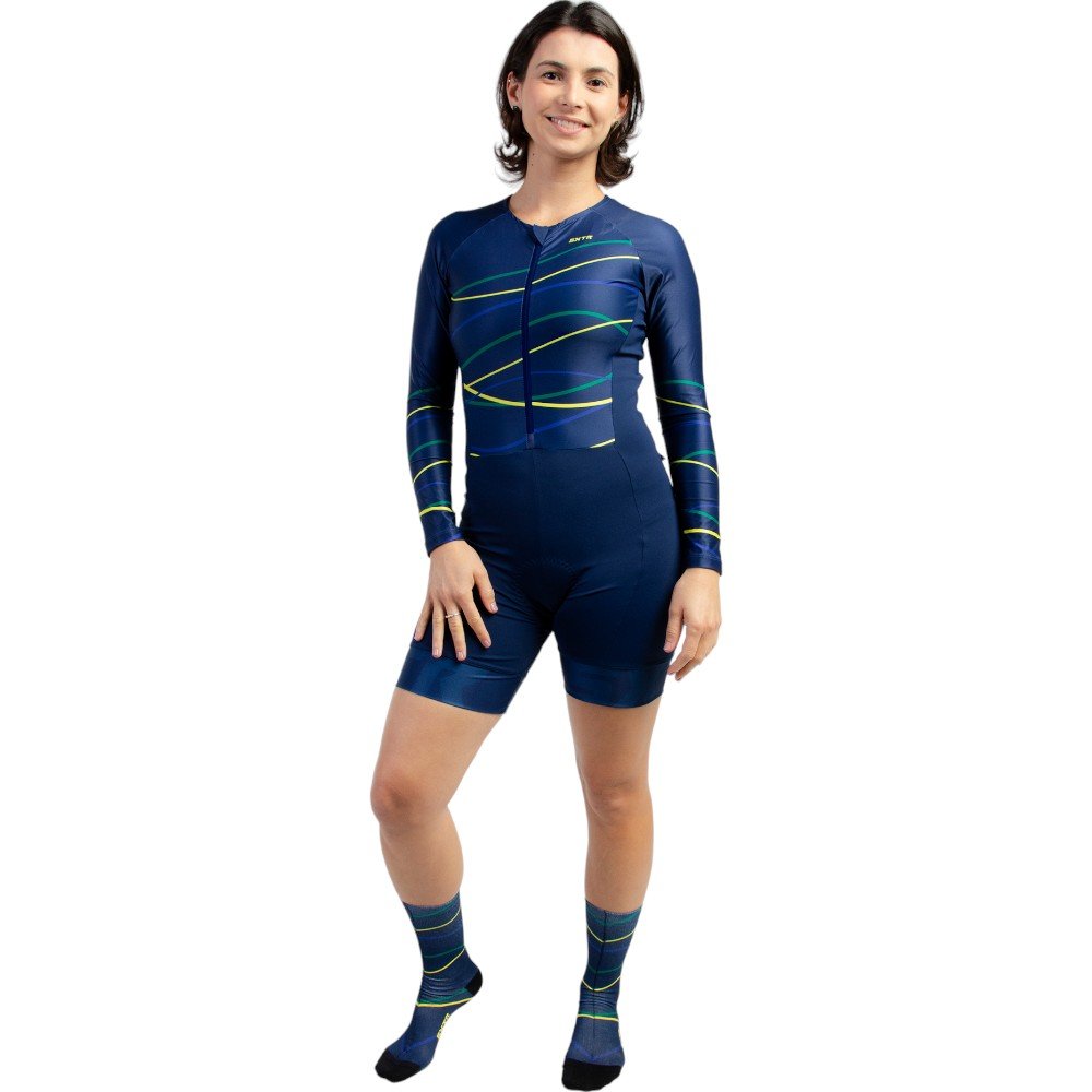 Macaquinho Ciclismo Feminino SportXtreme Adventure Copacabana - Azul, Amarelo e Verde
