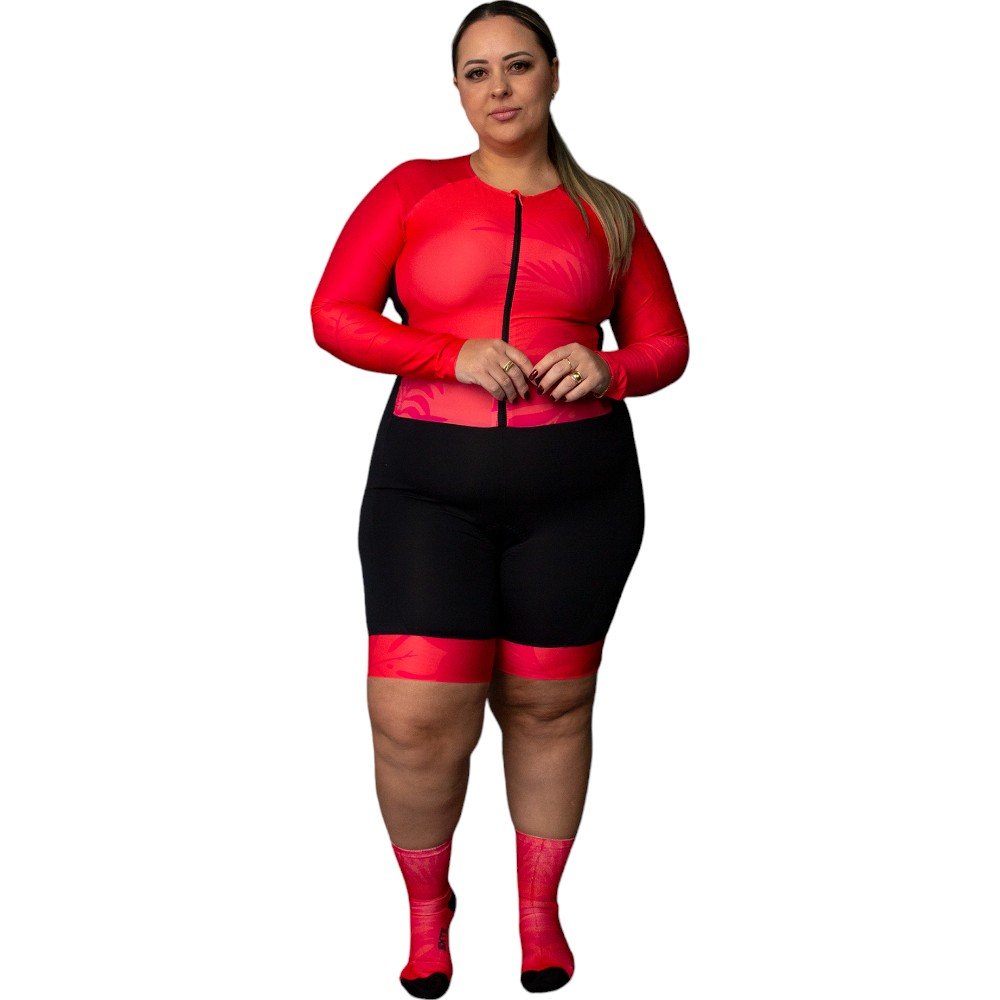 Compre agora o Macaquinho Ciclismo Feminino SportXtreme Adventure Manga Longa Miami Rosa e eleve sua experiência no ciclismo com estilo e tecnologia!