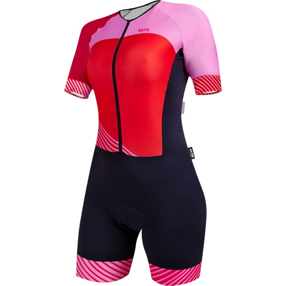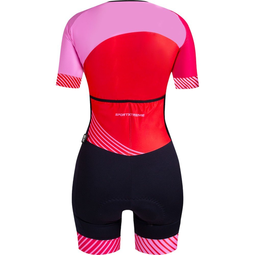 Compre agora o Macaquinho Ciclismo Feminino SportXtreme Comfort Carmine Rosa e Vermelho e eleve sua experiência no ciclismo com estilo e tecnologia!