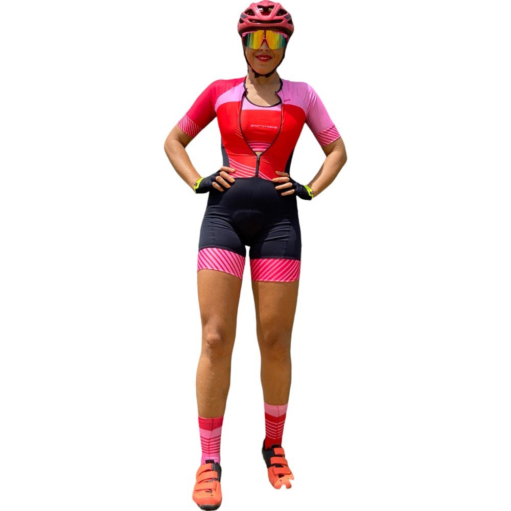 Macaquinho Ciclismo Feminino SportXtreme Comfort Carmine Rosa e Vermelho - Conforto e Estilo para Todas as Pedaladas