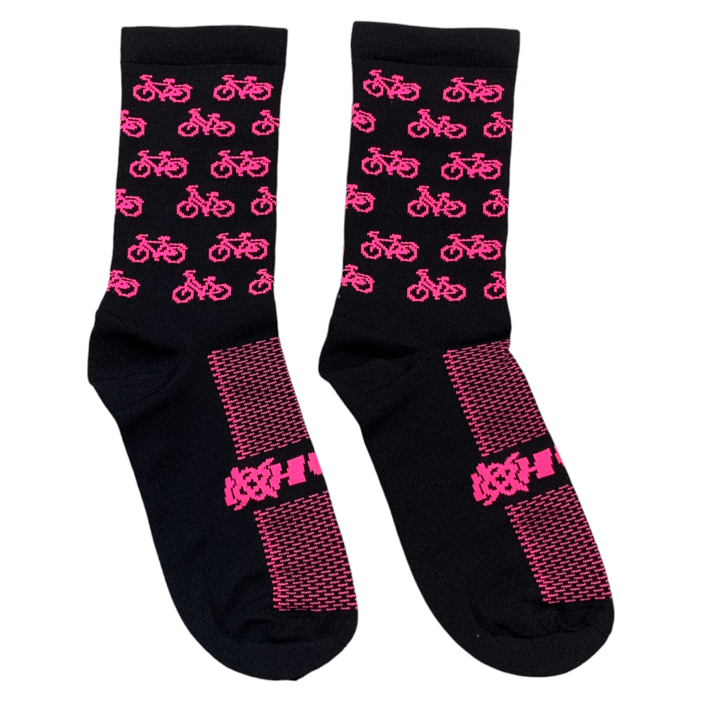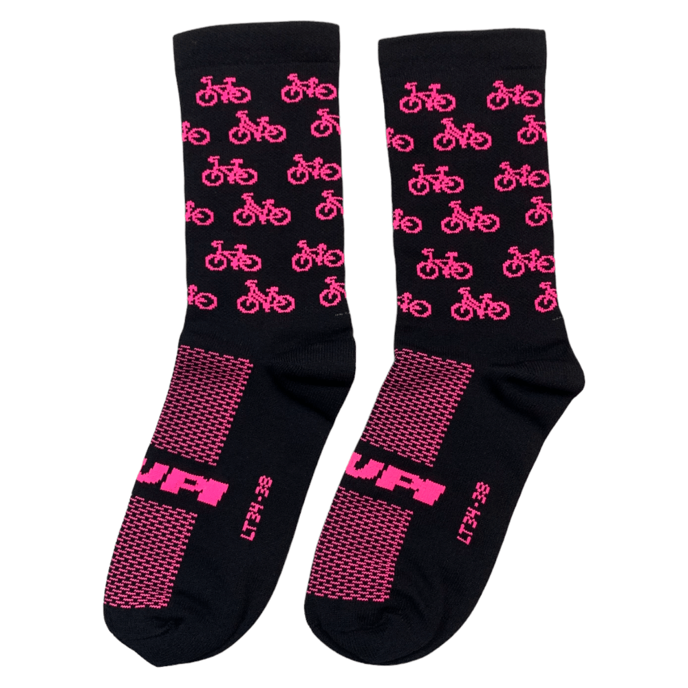 Meia Hupi Bike Preto e Rosa – Conforto e Estilo para Pés Menores (34 ao 38)