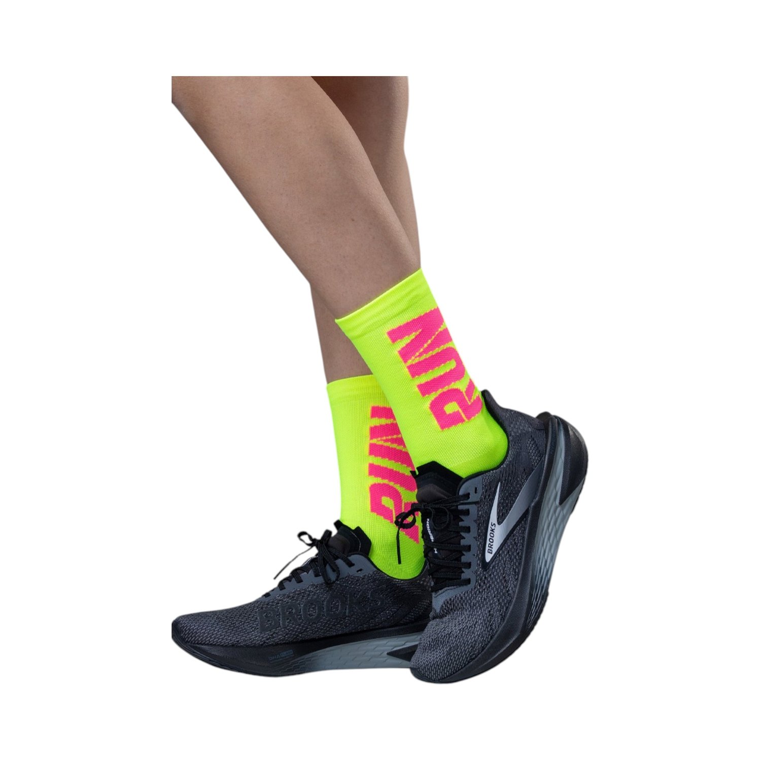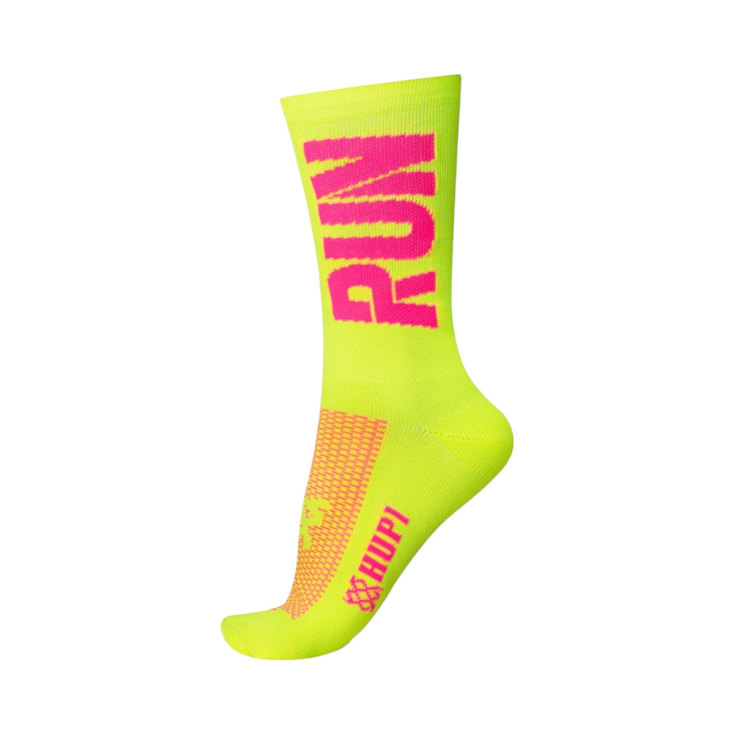 Meia Hupi Run Amarelo Neon e Rosa – Estilo, Conforto e Alta Performance para sua Corrida