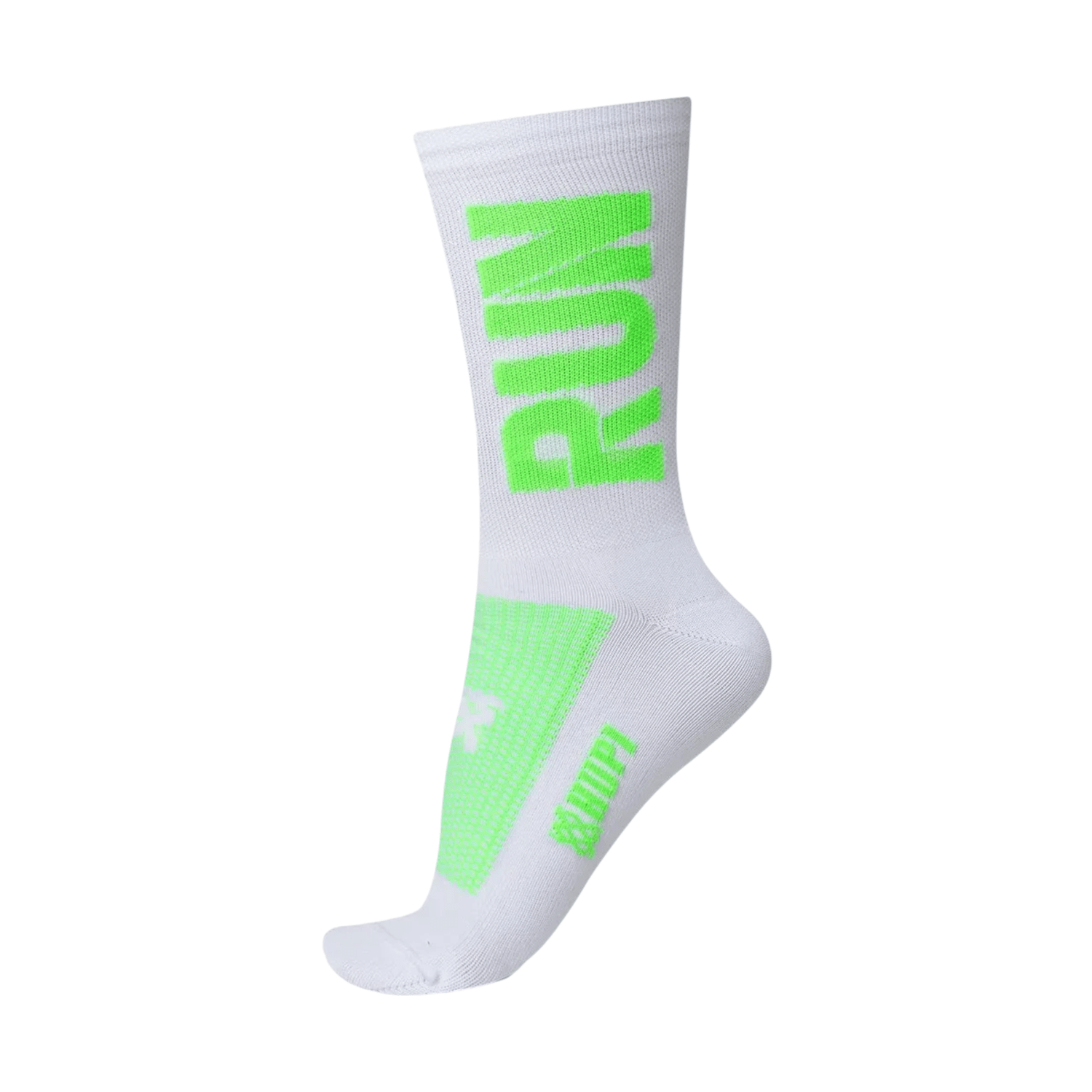 Meia Hupi Run Branca e Verde – Conforto e Performance para Corrida e Ciclismo