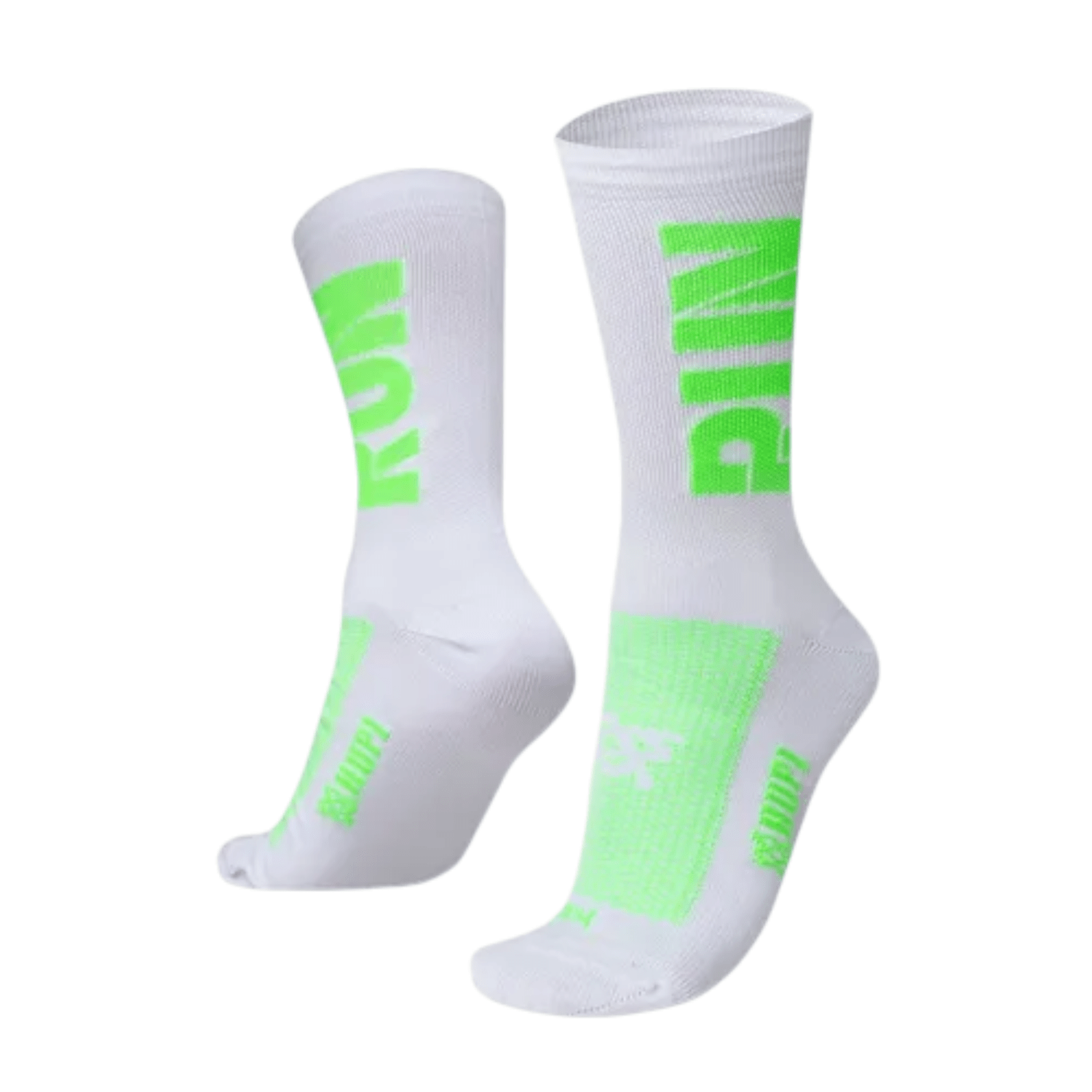 Com design moderno em branco e verde, a meia alia estilo e funcionalidade, sendo ideal tanto para corrida quanto para ciclismo. O ajuste anatômico proporciona excelente compressão, ajudando na circulação sanguínea e reduzindo o risco de desconfortos em longas distâncias.